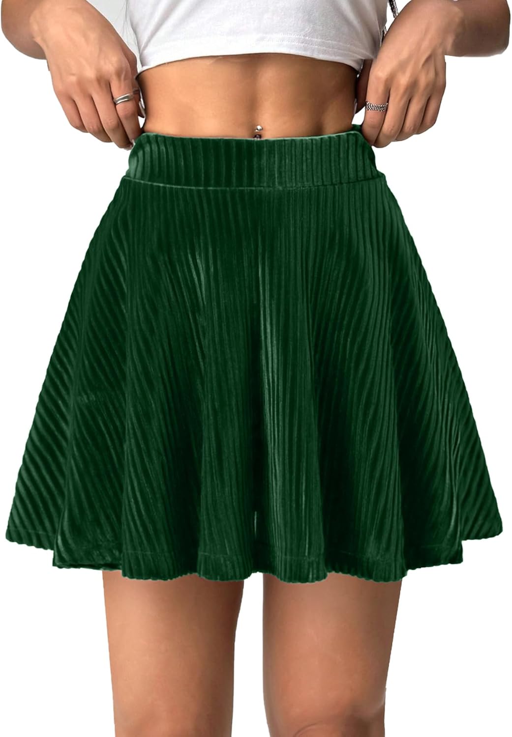 Women's Velvet Mini Skirts High Waisted Pleated Skirt with Shorts Christmas Stretchy Elastic Waistband Skort