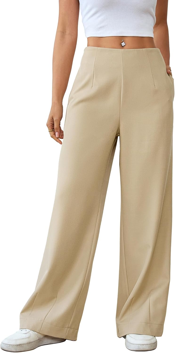 Bsubseach Wide Leg Pants Woman High Waisted Work Business Casual Trousers Dress Palazzo Pants Women Slacks with Pockets