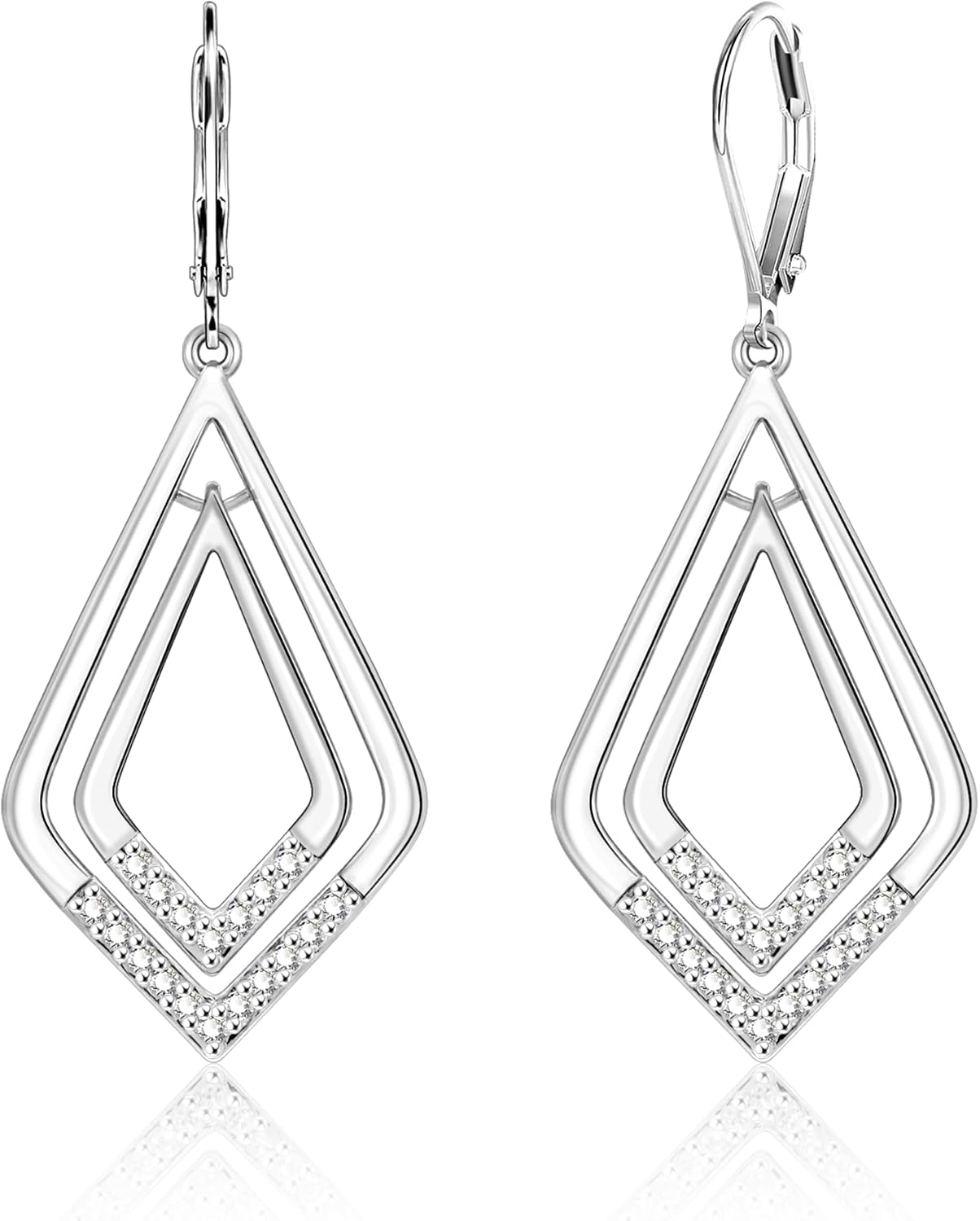 925 Sterling Silver Dangle Earrings for Women 14K Gold Plated Geometric Cubic Zirconia Dangle leverback Earrings Hypoallergenic Lightweight Dangling V Earring for Women Trendy Jewelry Gifts