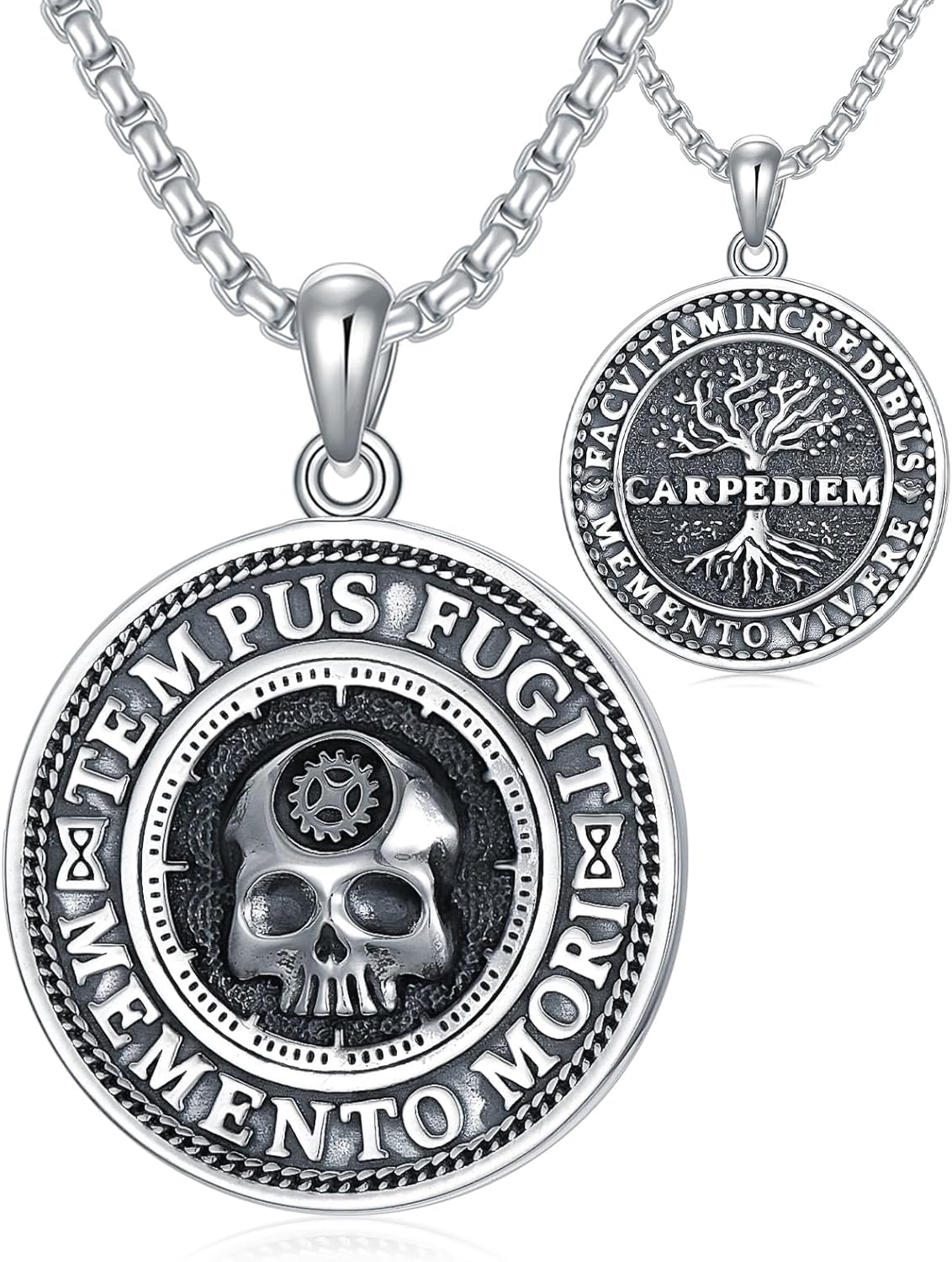 Seiyang Skull Necklace Sterling Silver Skull Pendant Gothic Jewelry Gift for Goth Lovers Halloween (with Gift Box)