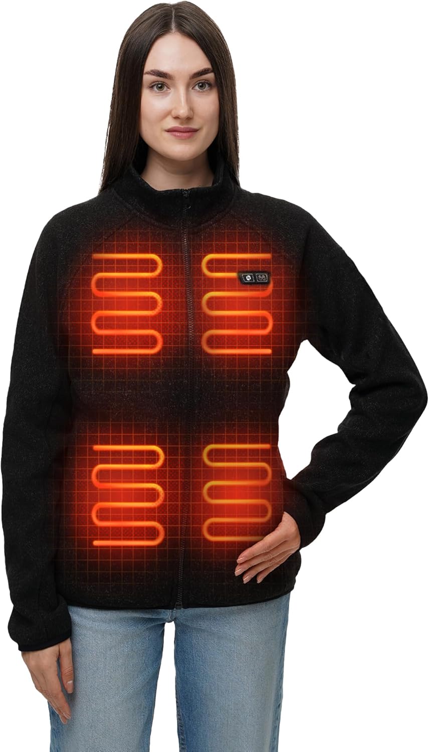 HENNCHEE Heated Fleece Jackets for Women with 12V 16000mah Battery Pack, Zip Up Heating Sweater, Knitted Sweatshirt Coat