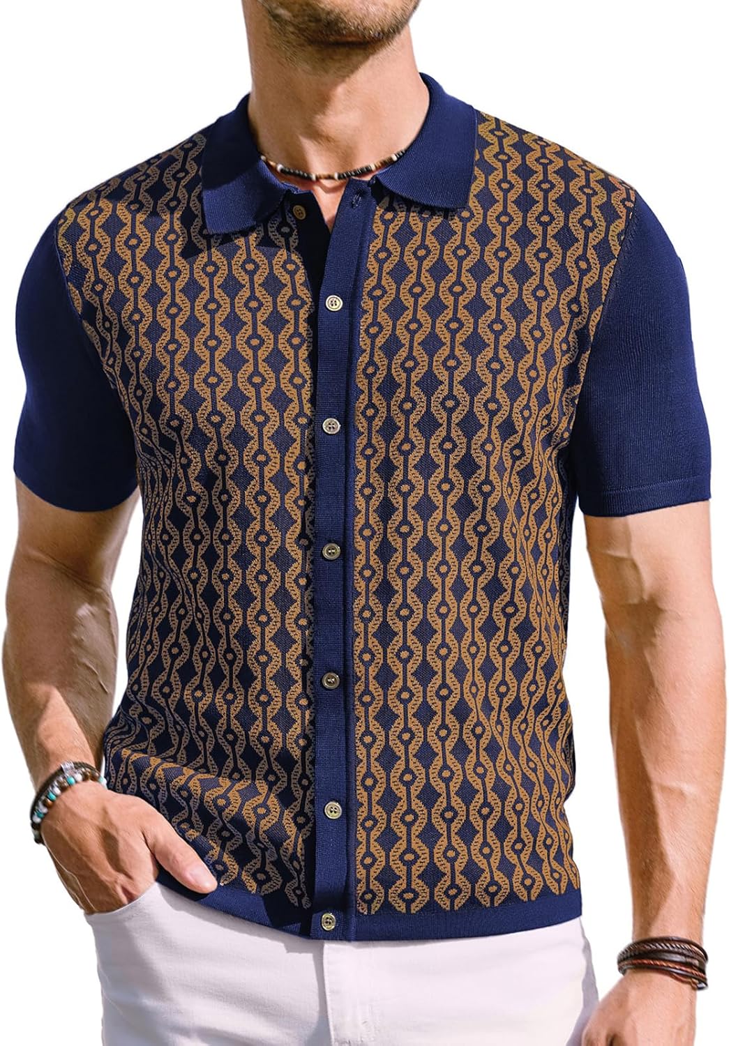PJ PAUL JONES Men's Contrast 70s Vintage Polo Shirts Short Sleeve Knitwear