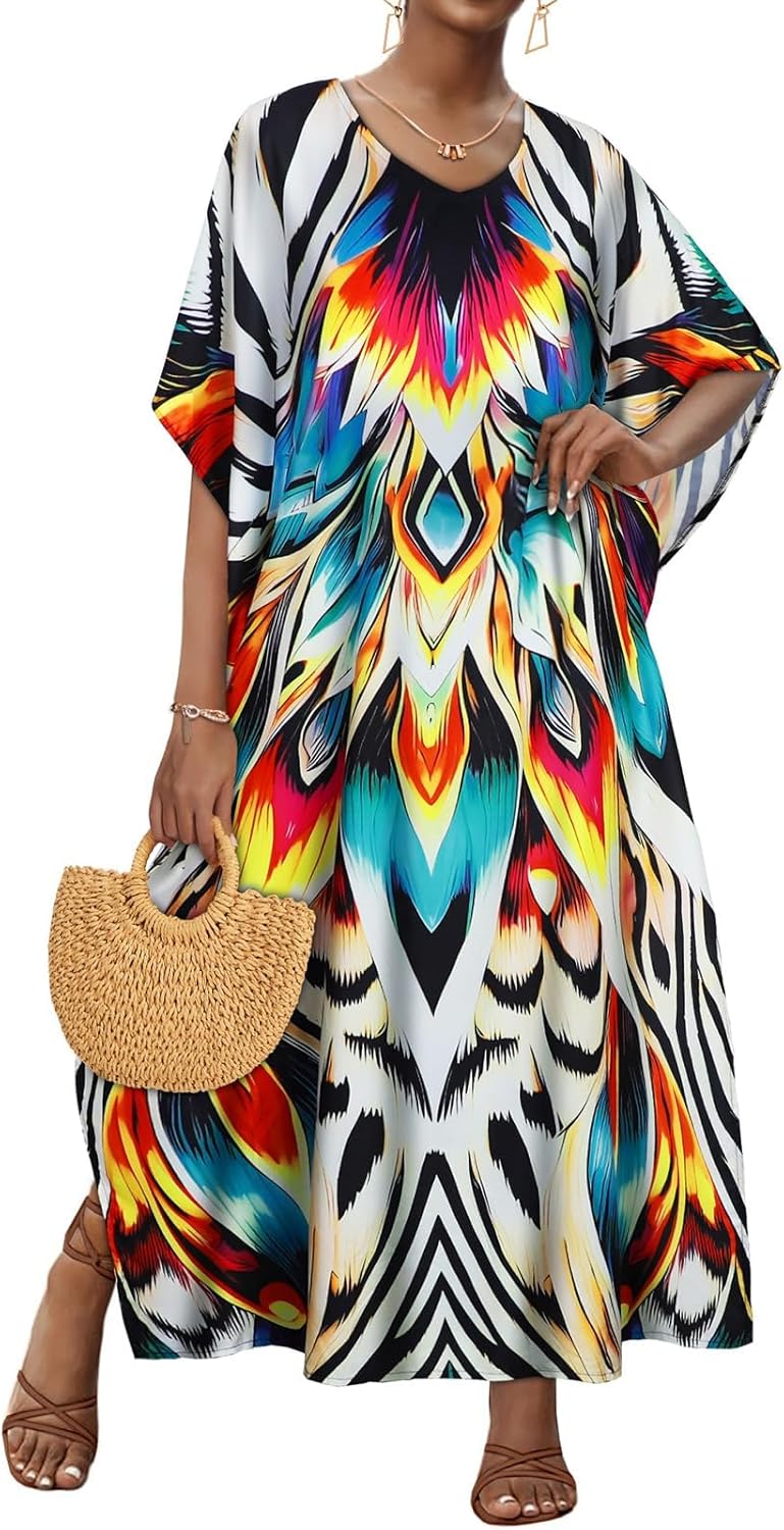 Kaftan Dresses for Women Plus Size V Neck Caftan Long Batwing Sleeve Swimsuit Cover Up Beach Swimwear