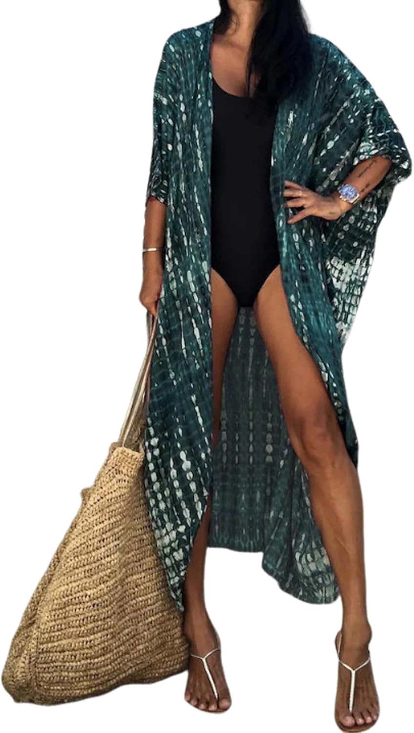 Bsubseach Stylish Tie Dye Open Front Long Kimono Swimsuit Cover Up for Women Swimwear Cover Ups