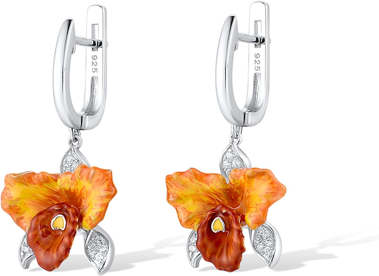 Santuzza Enamel Gemston Flower 925 Sterling Silvere Earrings