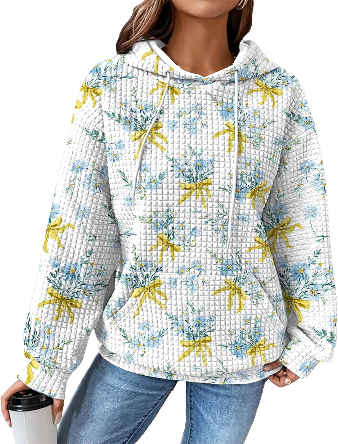 Graphic Sweatshirts for Women Fashion Retro Print Long Sleeve Drawstring Crewneck Comfy Winter Outfits 2025