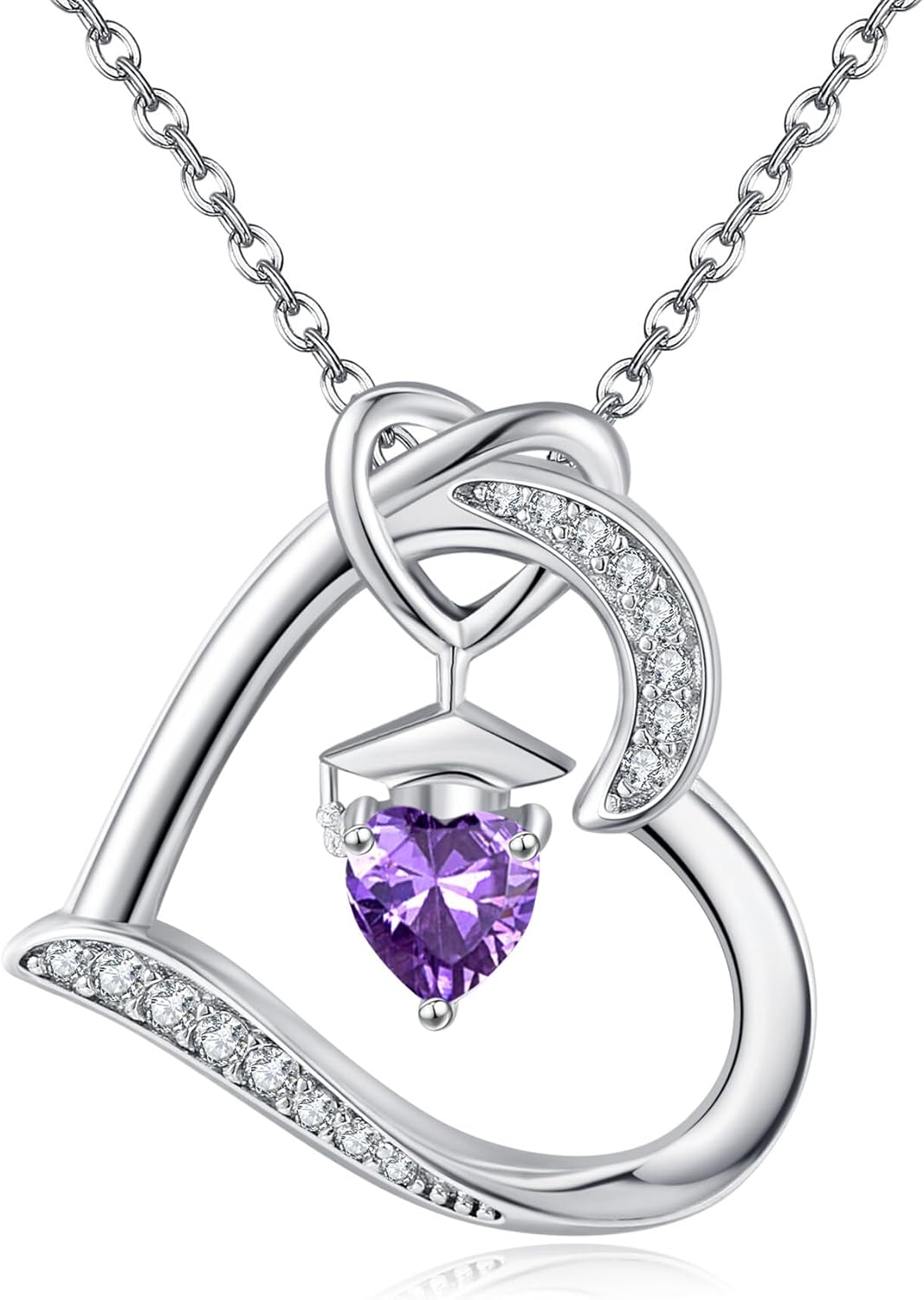 YAFEINI Birthstone Graduation Necklace S925 Sterling Silver Class of 2024 Bachelor Cap Necklaces Class of 2025 Heart Pendant College High School Graduation Jewelry Gifts for Women (February-Amethyst)