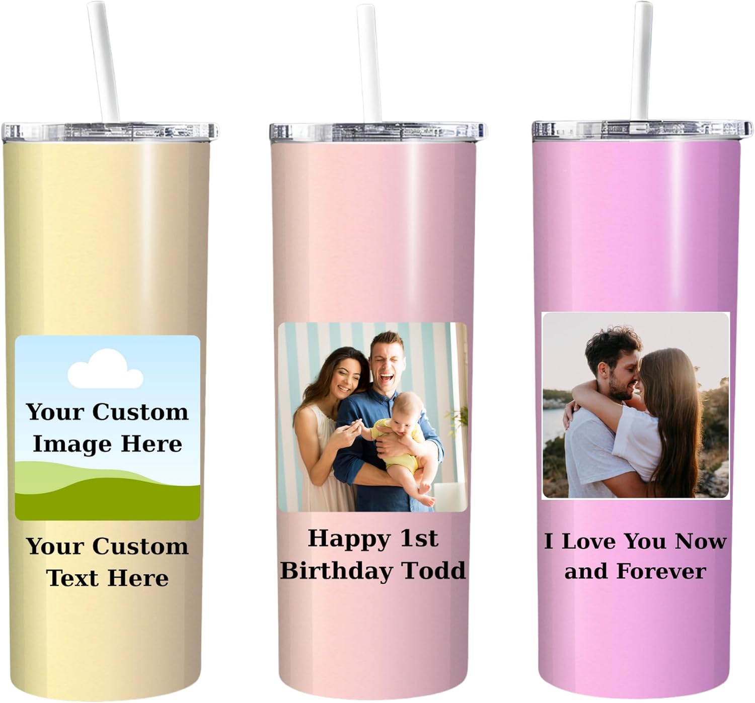 - ✅【SPECIAL OCCASIONS】: Our Personalized Tumbler with Picture Text is perfect for all special occasions. Make it a unique surprise for mom, dad, grandma, grandpa, wife, husband, sister, friends, teachers, colleagues, or yourself. Perfect for birthdays, Christmas, Thanksgiving, Valentine's Day, Mother's Day Gift, Father's Day, Graduation, Halloween, Anniversary, Wedding, Bridal Shower, and any gift-giving occasion. Our 20 oz custom tumbler will create long-lasting memories and be cherished for years to come.