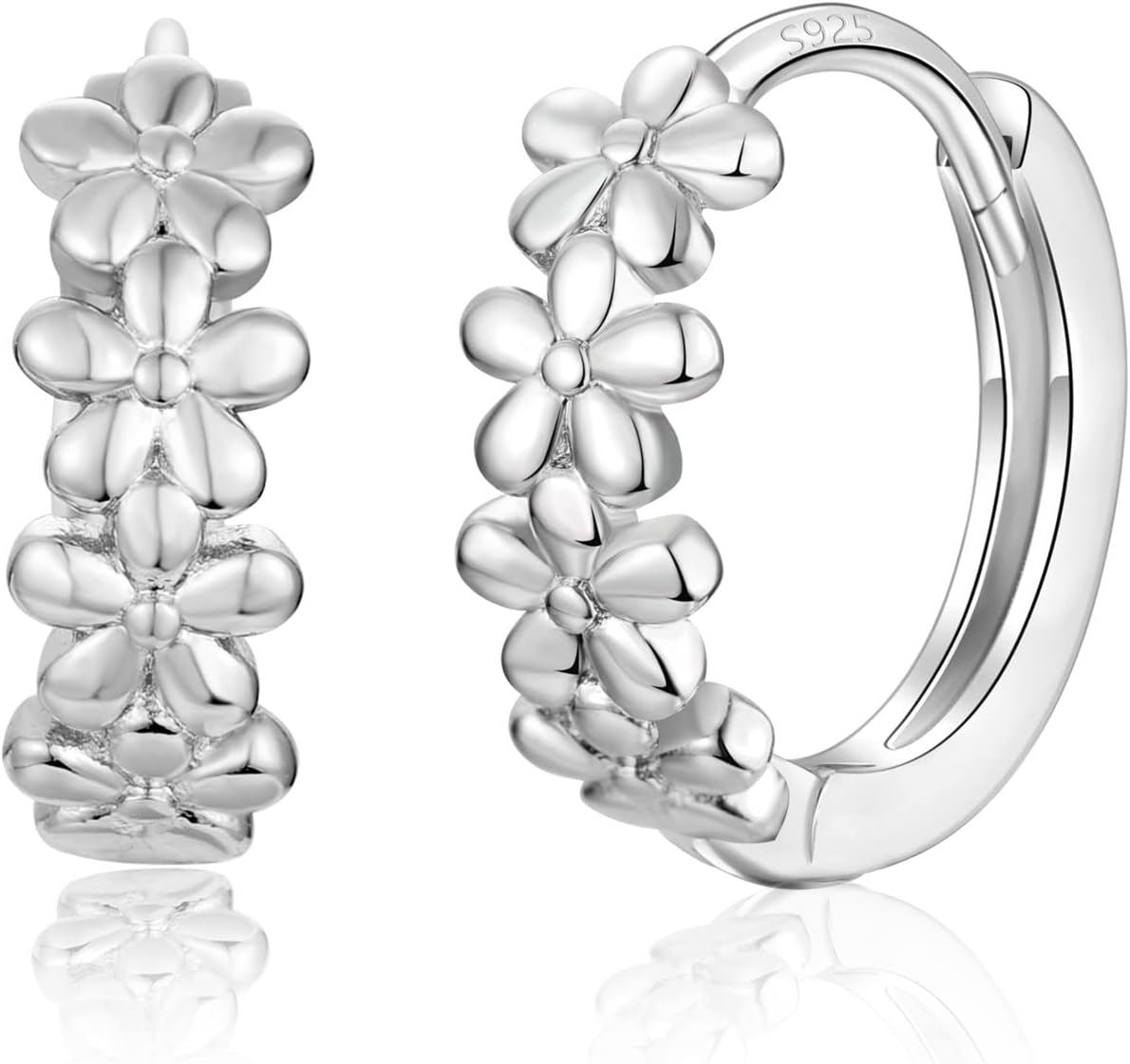 925 Sterling Silver Hoop Earrings for Women Girls Beautiful Flower Cluster Diameter 10mm/12mm Hypoallergenic Small huggie earrings, 3 Color in Silver/Gold/Sliver Gold