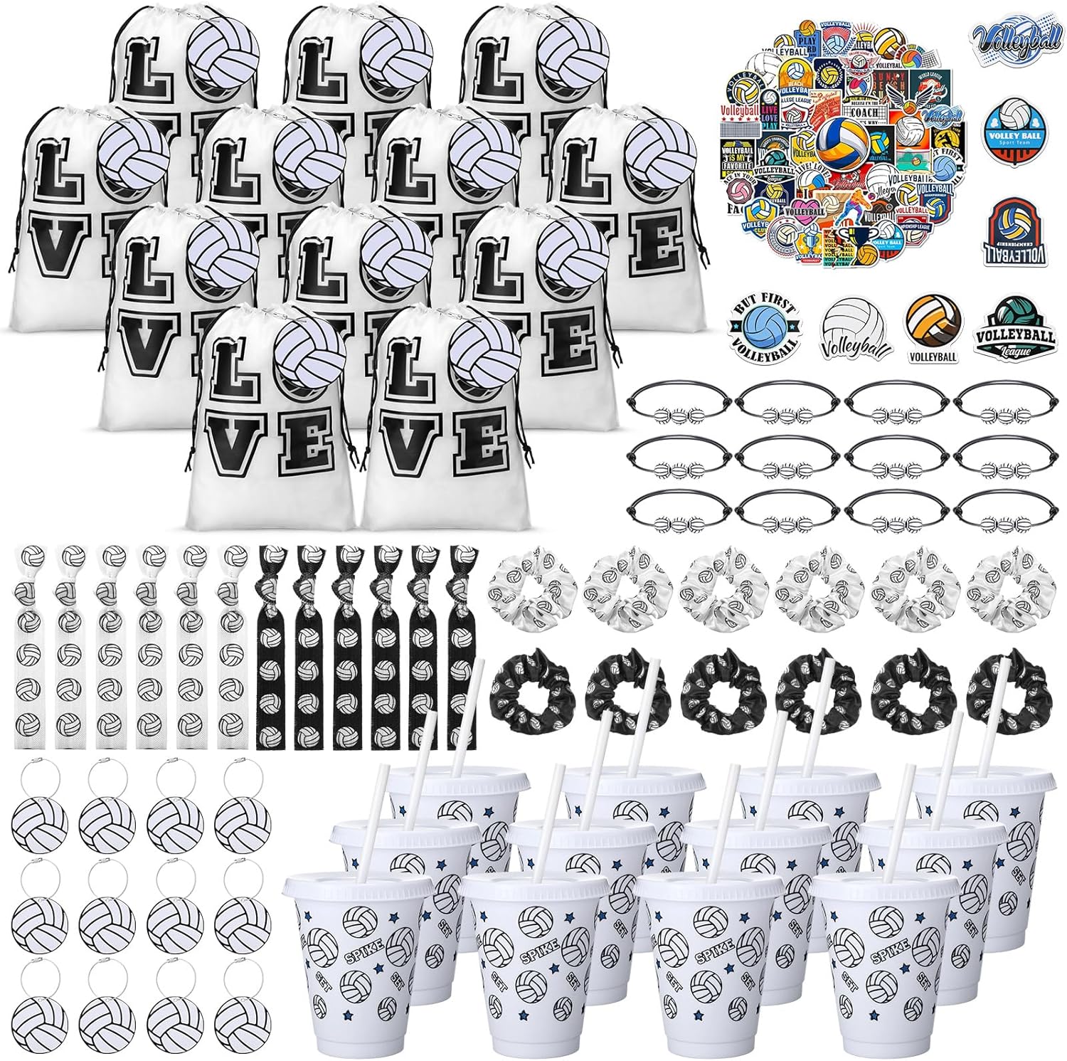 122 Pcs Volleyball Gifts for Team Volleyball Party Favors Include 12 Volleyball Gift Bags, 12 Bracelets 12 Volleyball Cups 12 Scrunchies 12 Hair Ties 12 Name Tags 50 Stickers for Players Sports Lovers