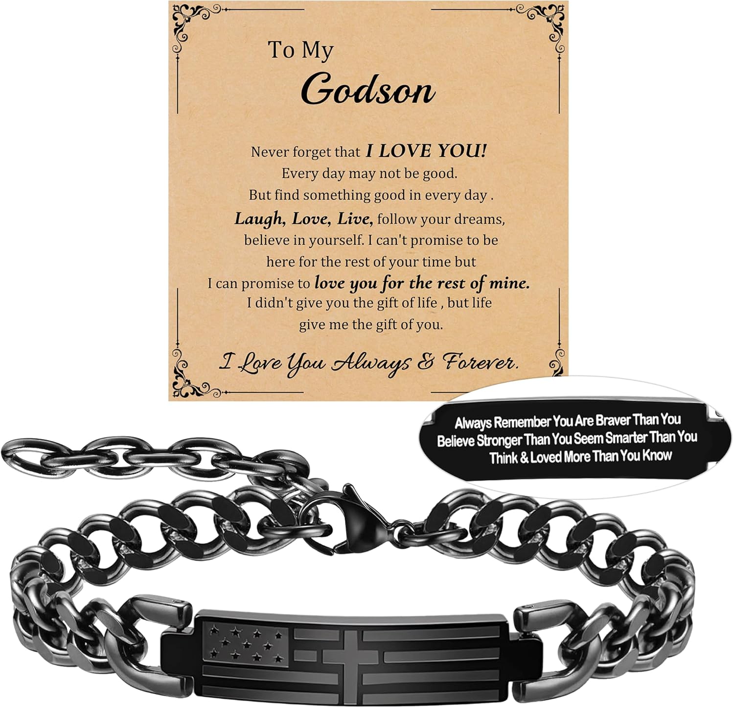 Grandson Gifts Bracelets for Him Men Stainless Steel Cross Bracelet for Men Adjustable Cuban Link Chain Bible Verse Faith Bracelet with Cross Birthday Gifts Jewelry