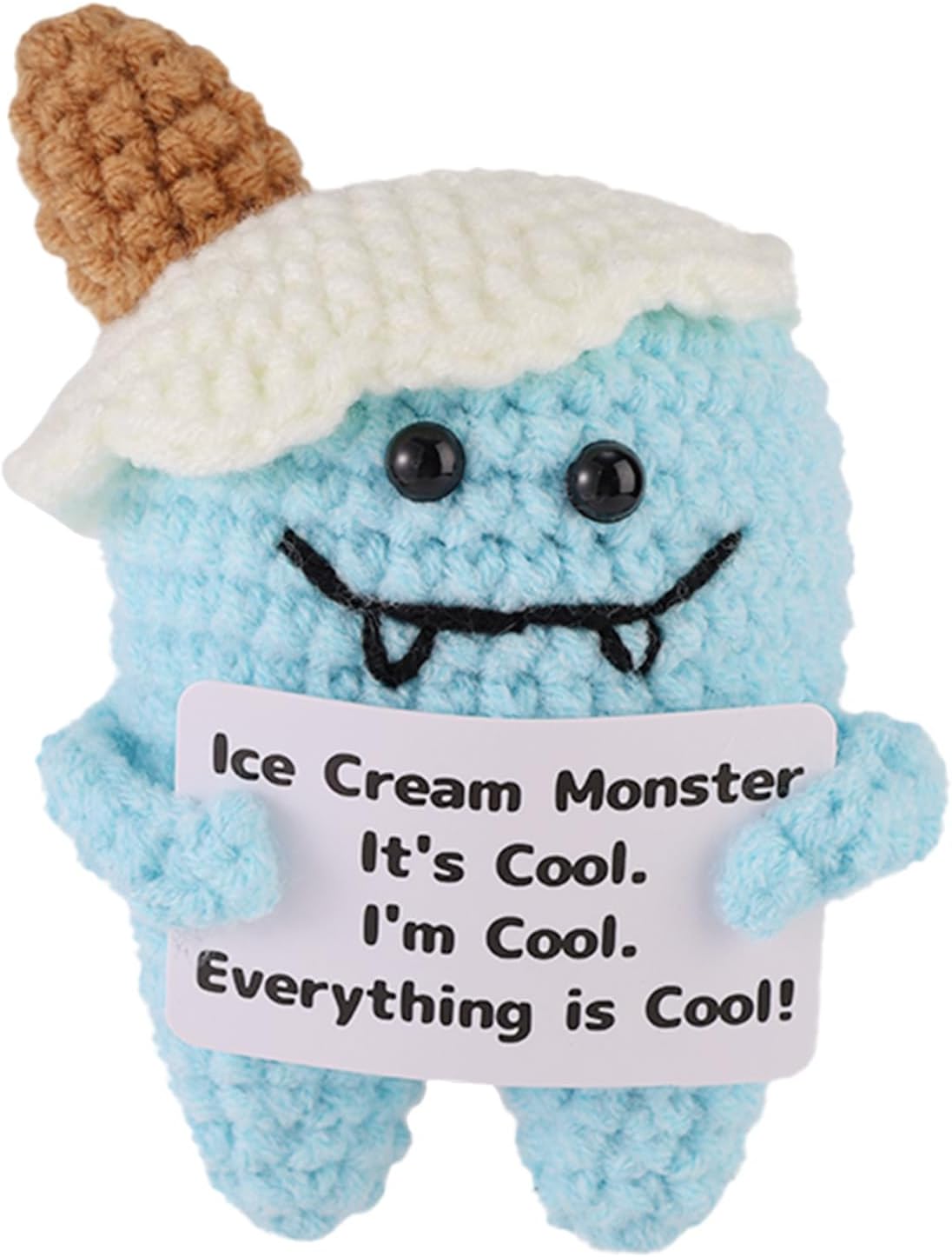 Monster, Cute Handmade Crochet Doll with Encouraging Cards Inspirational Emotional Plush Positive Support Gifts for Men Women