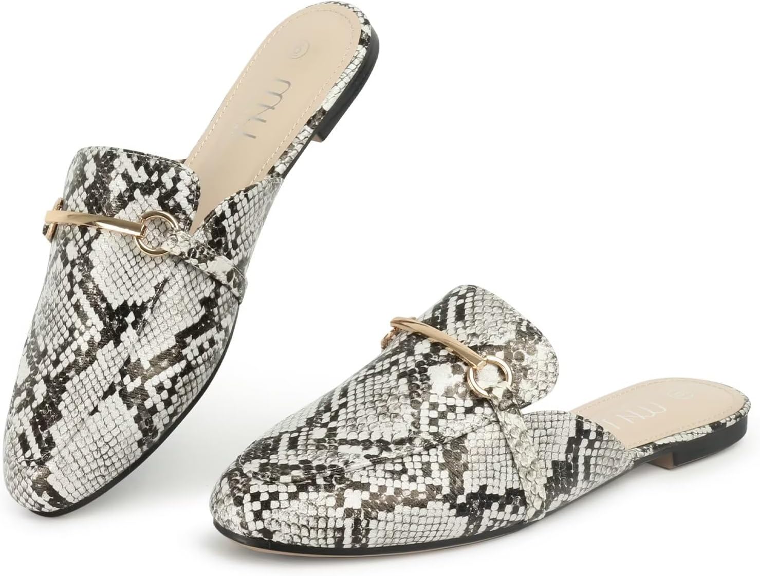 MUSSHOE Mules for Woman Buckle Flats Comfortable Slip on Women Mules Flats Shoes Backless Loafers