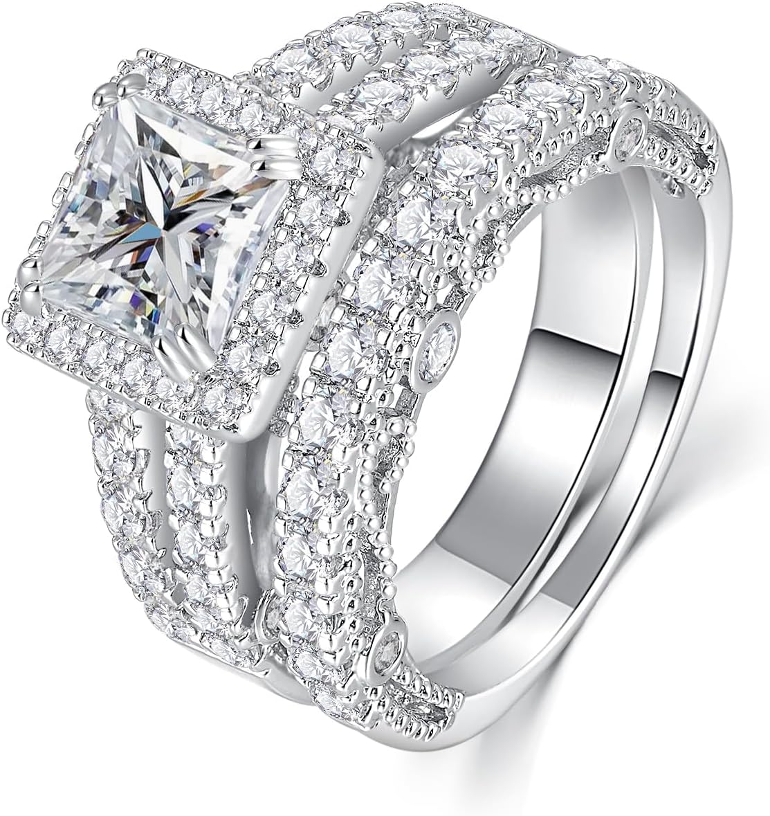 AVECON 5CT Princess Cut Engagement Ring, Promise Wedding Cubic Zirconia White Gold Plated Band Set for Women Size 5-10