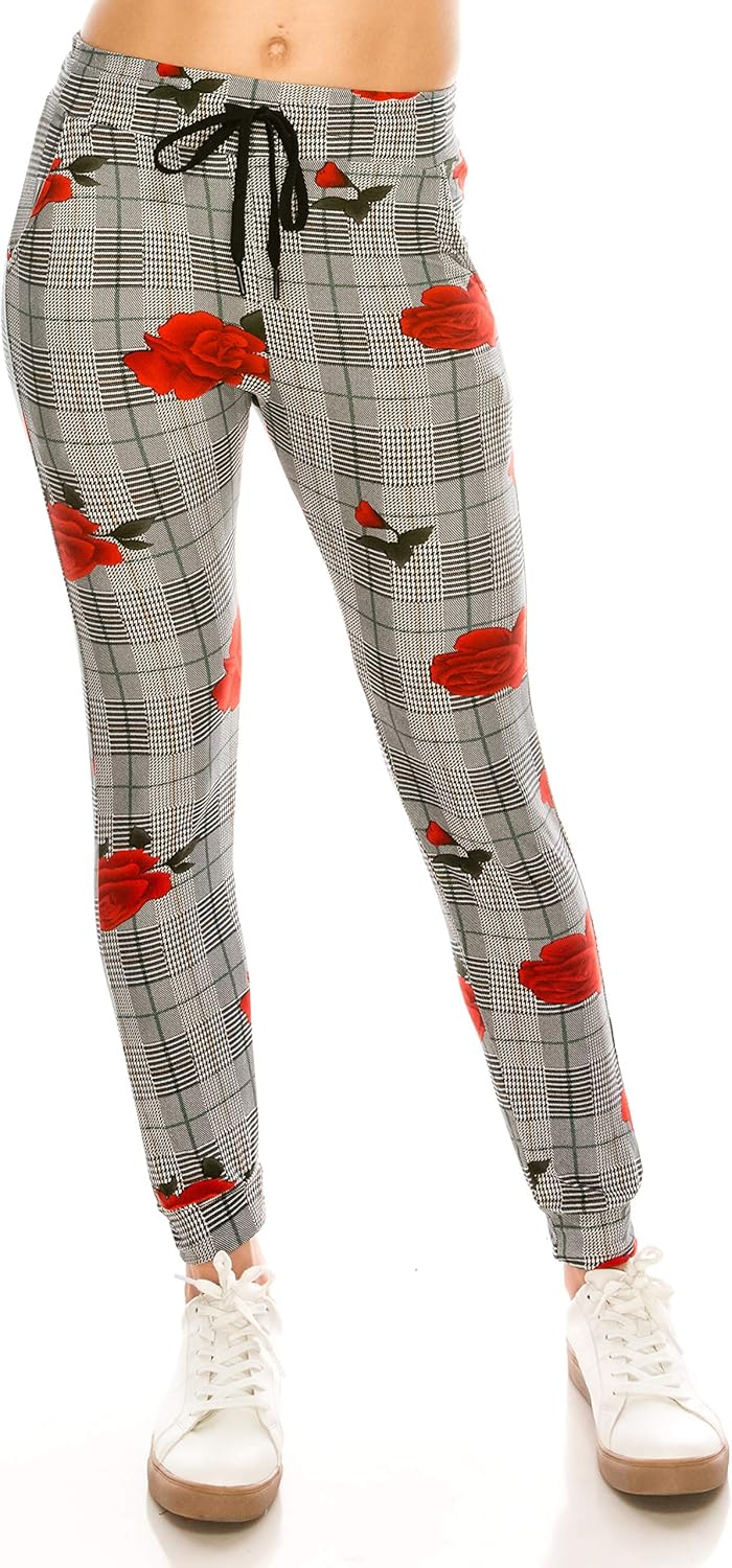 ALWAYS Women Drawstrings Jogger Sweatpants - Super Light Skinny Plaid Checkered Floral Soft Pockets Pants US S (Tag S/M)