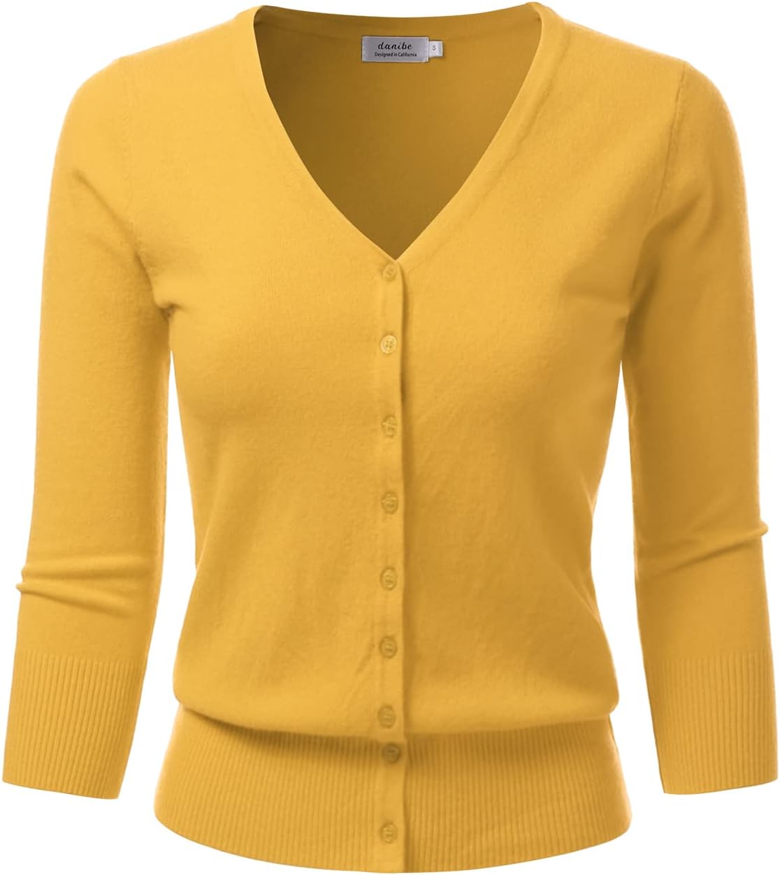 Women's 3/4 Sleeve V-Neck Button Down Knit Sweater Soft Cardigan (S-XXL)