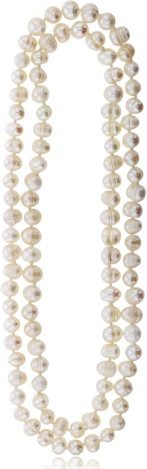 White 8-9mm Baroque Freshwater Pearl Endless Necklace For Women 24-36"