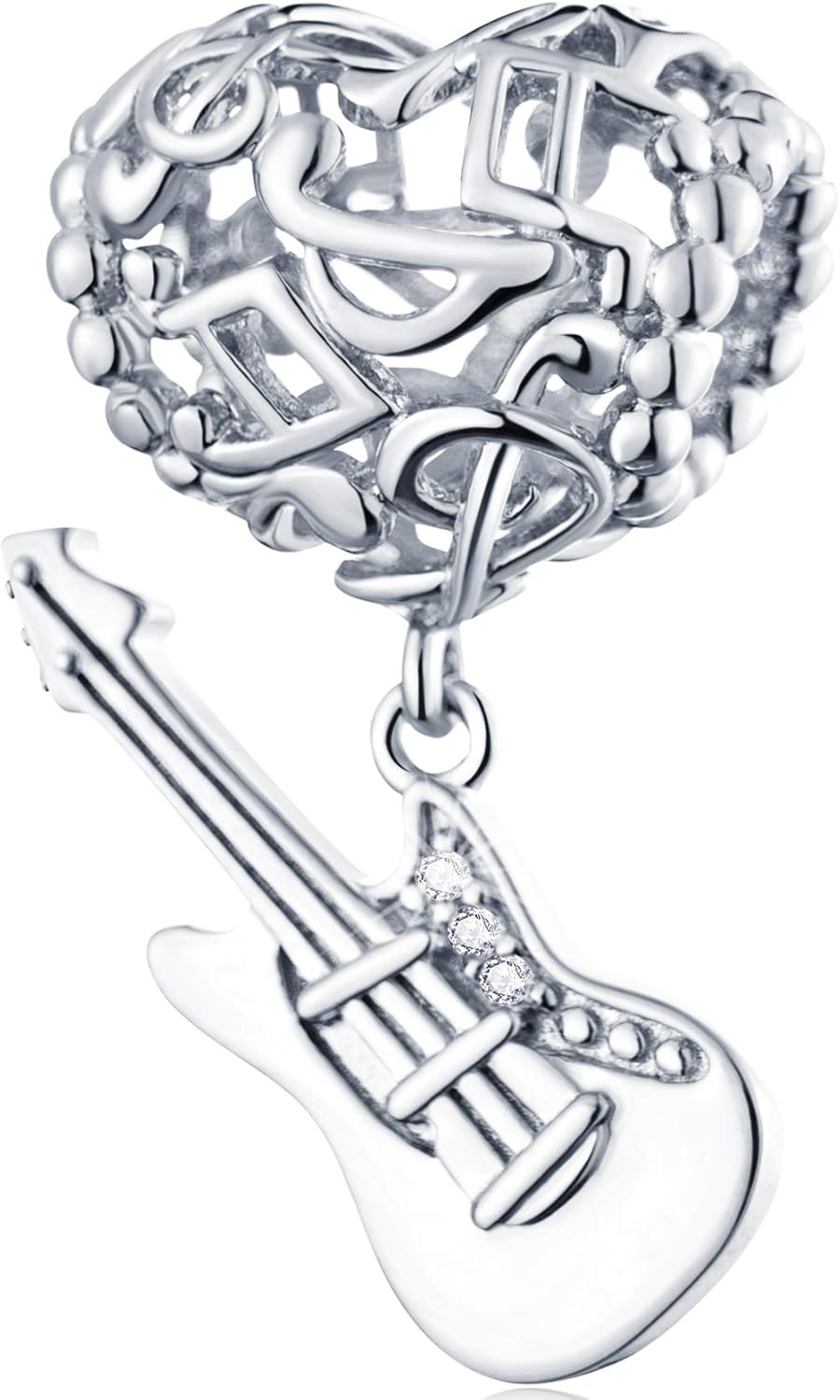 Silver Guitar Heart Charm