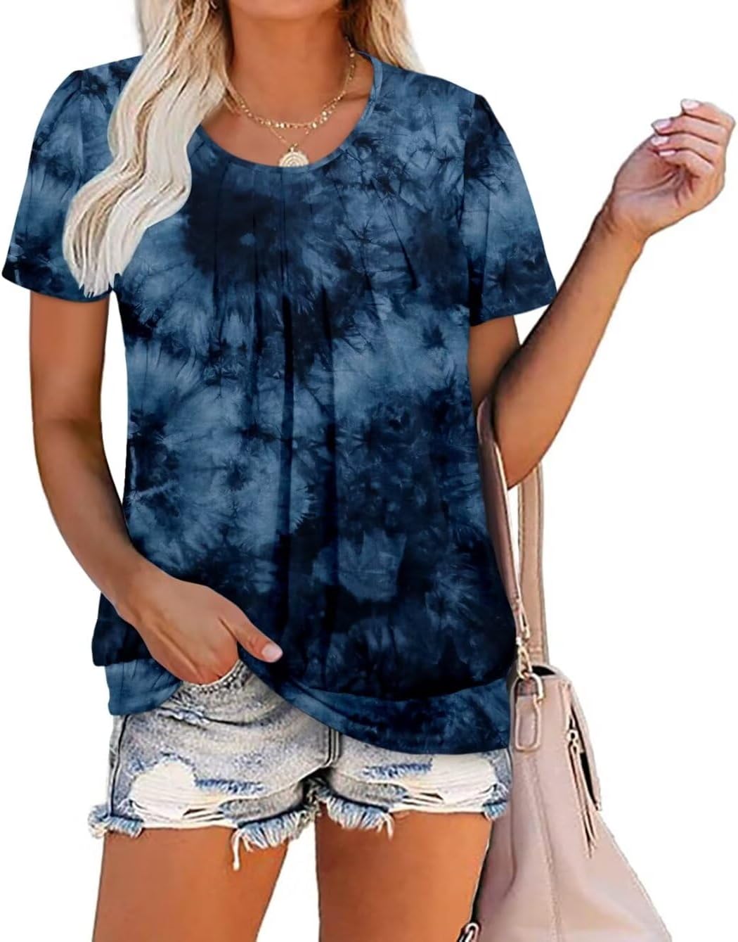 ZOLUCKY Womens Casual Short Sleeve Tunic Tops Scoop Neck T Shirts Summer Loose Fit Tunics
