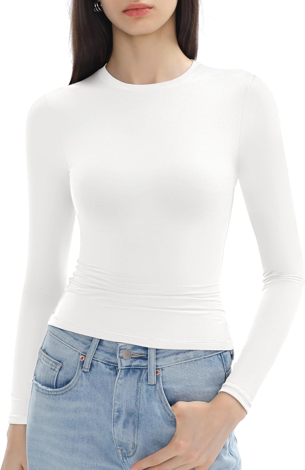 Beluring Women Long Sleeve Shirt Crew Neck Tops Slim Fit Tshirts Basic Ribbed Tee