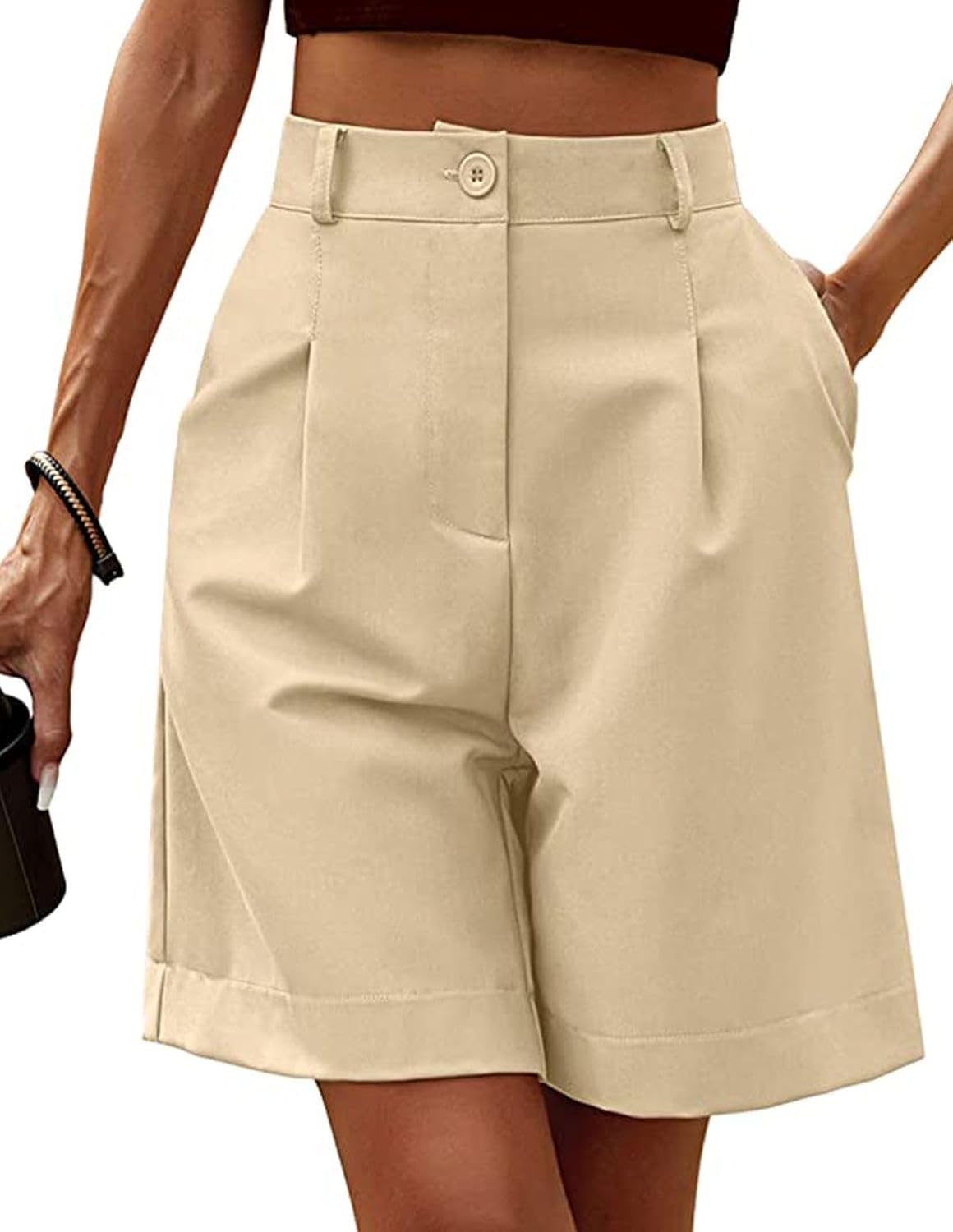 Women's Casual Bermuda Shorts Elastic Waist Wide Leg Knee Length Summer Shorts with Pockets