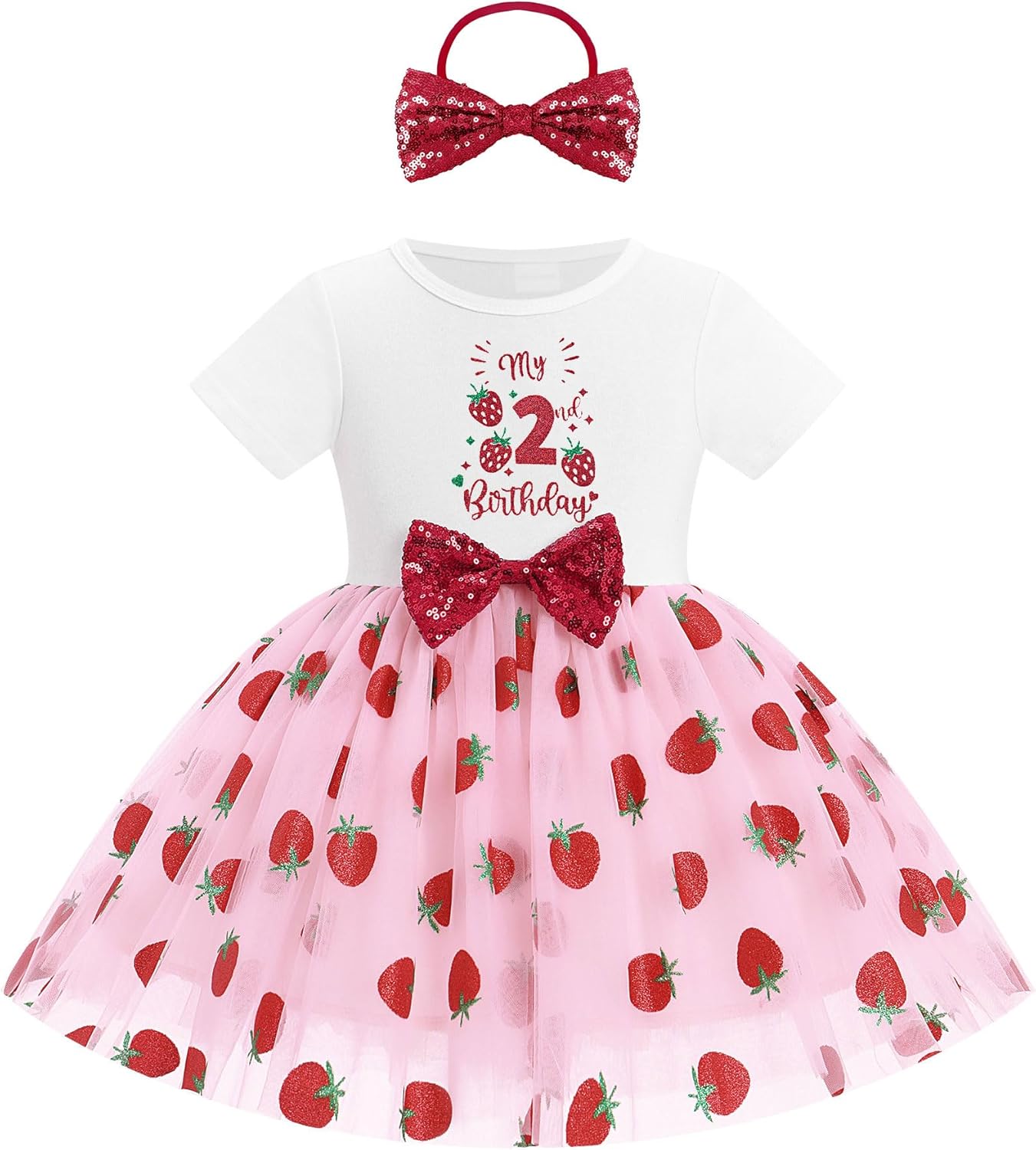 IDOPIP Strawberry 1st 2nd 3rd Birthday Outfit for Baby Girls Sequin Berry Princess Cake Smash Party Tutu Dress with Headband
