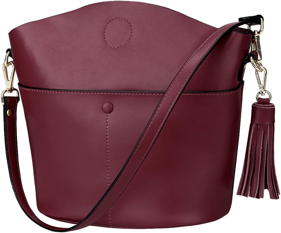S-ZONE Women Small Cow Split Genuine Leather Crossbody Bucket Bag Shoulder Purse Handbag