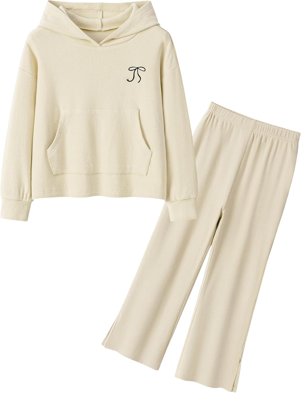 Girls Clothing Set Bow Embroidery Hoodie Pullover Sweatshirt & Split Flare Pants Outfits 2Pcs with Pockets 5-14Y