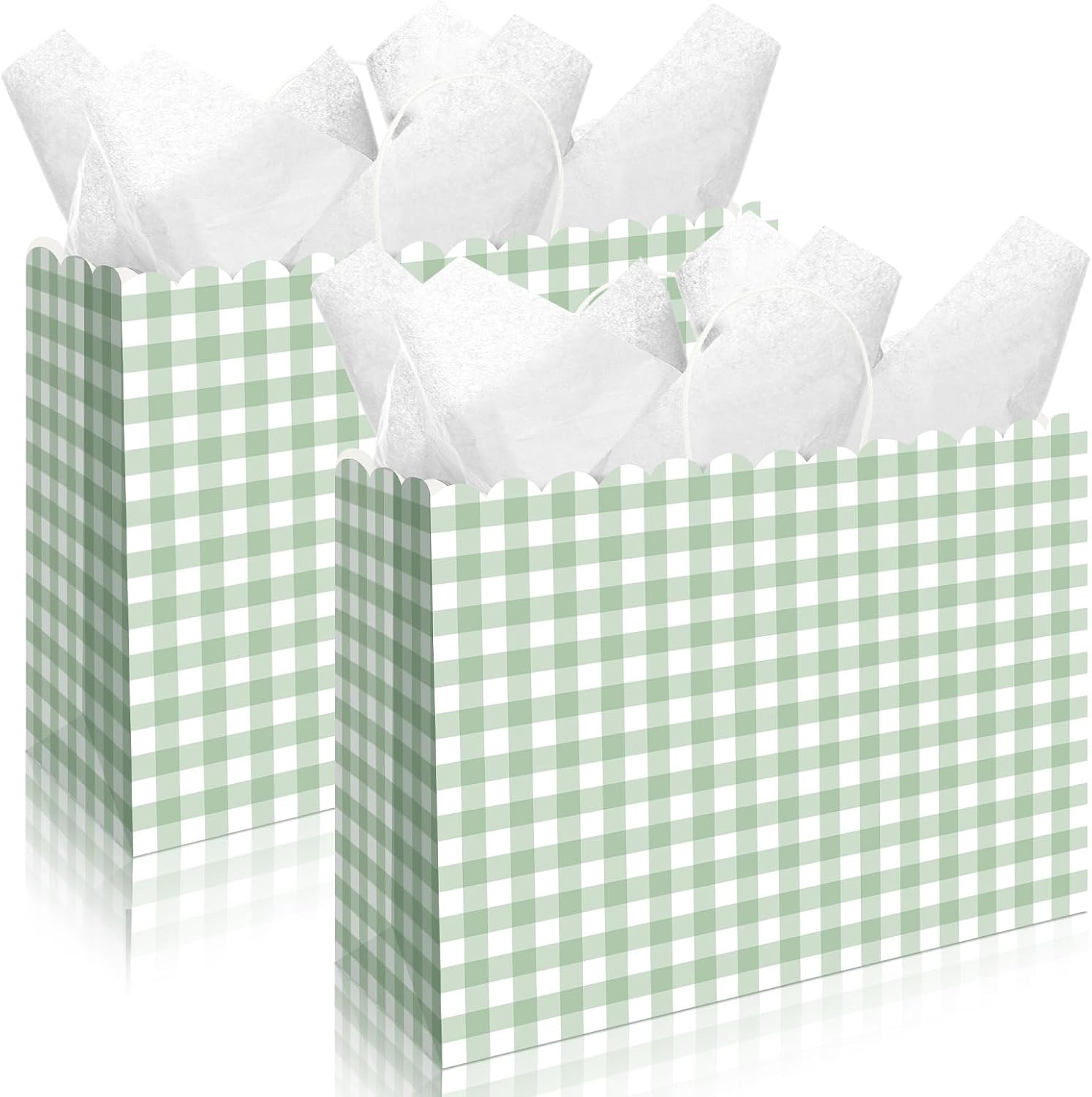 - Adorable Gingham Design: gingham design, the sage green gift bags feature an adorable gingham pattern in an attractive white and sage green, topped off with a cute, scalloped top edge, exuding charm and warmth, a brilliant addition to most gift giving event