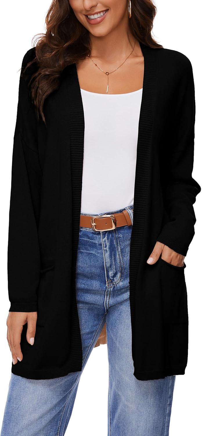 Women's 100% Cotton Lightweight Open Front Cardigans with Pockets Oversized Knit Casual Sweaters Outwear