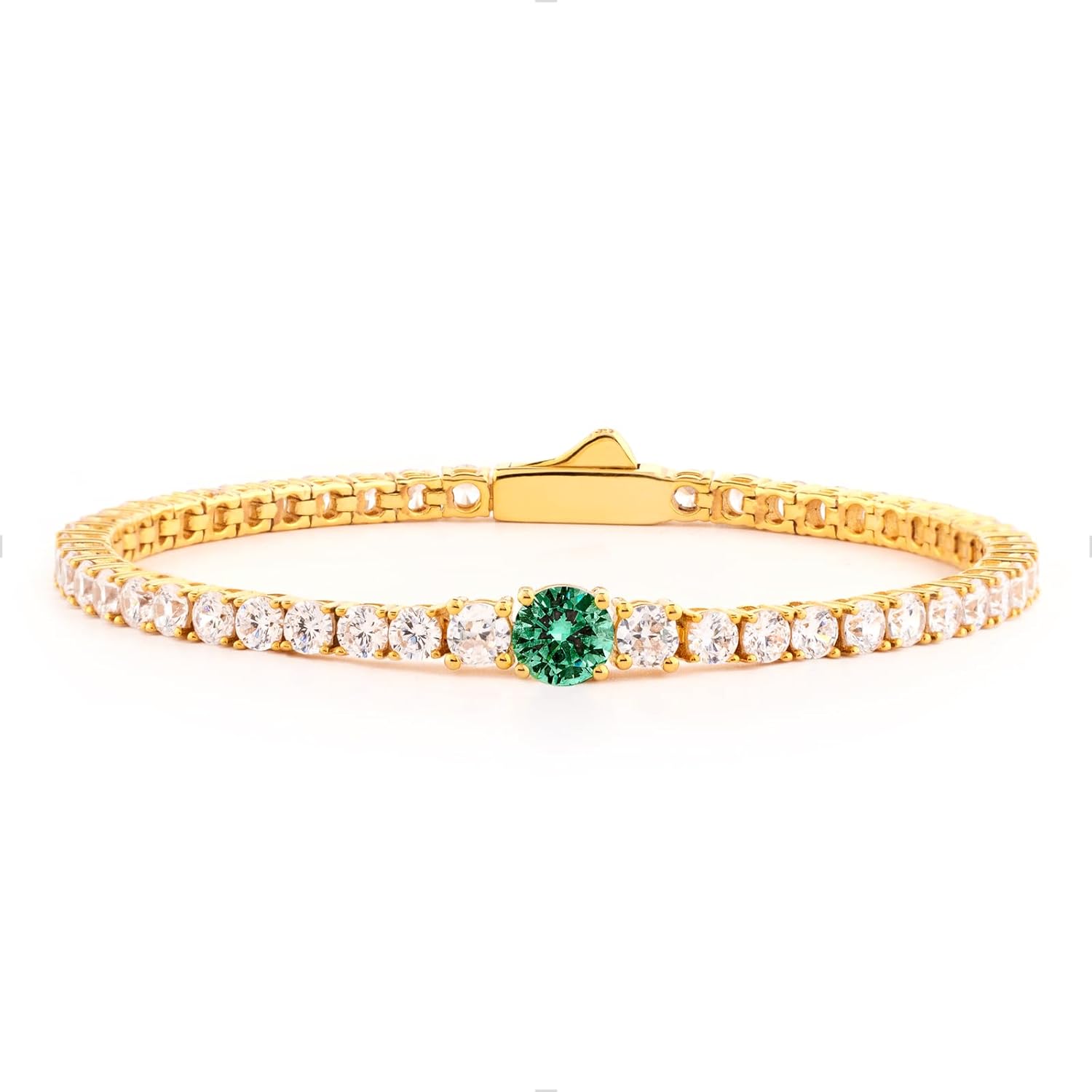 STORYJEWELLERY Birthstone Bracelets for Women, Tennis Bracelets for Women, Gold Plated Cubic Zirconia Bracelet, Lab-Grown Birthstone Jewelry