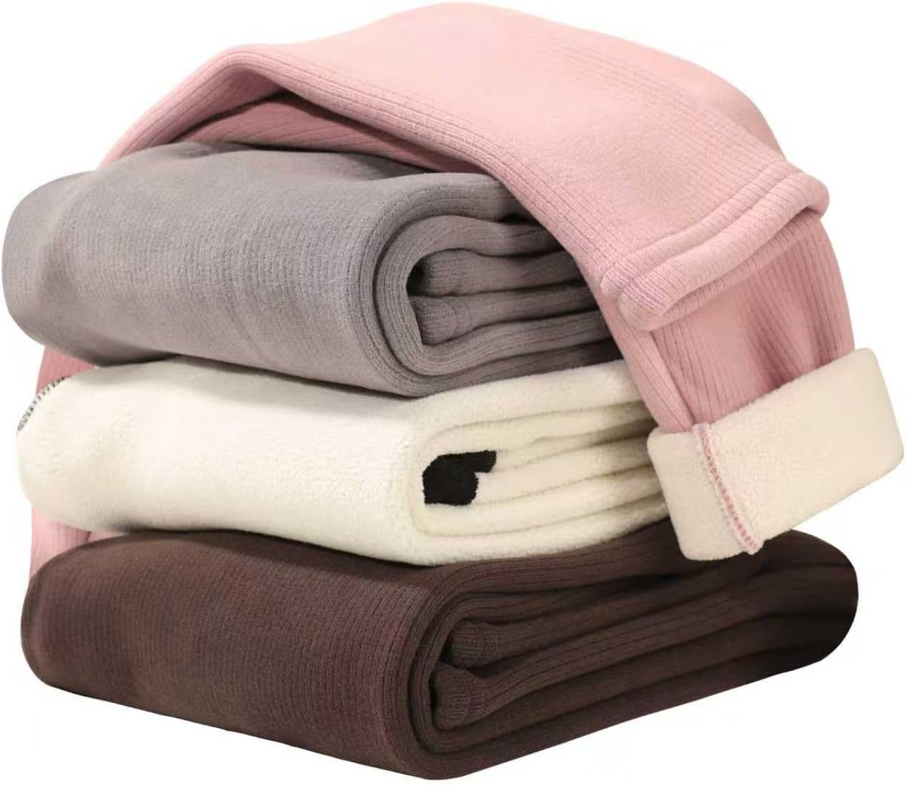 4 Pack Girls Fleece Lined Leggings Kids Winter Warm Pants Girls Thick Basic Solid Full Length Pants