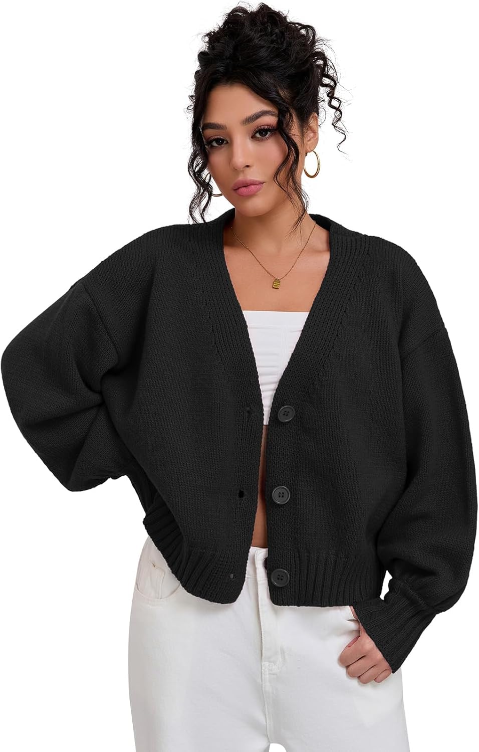 QIANXIZHAN Women's Chunky Cardigan Sweaters, V-Neck Knit Button Cropped Sweater Fall Fashion 2026