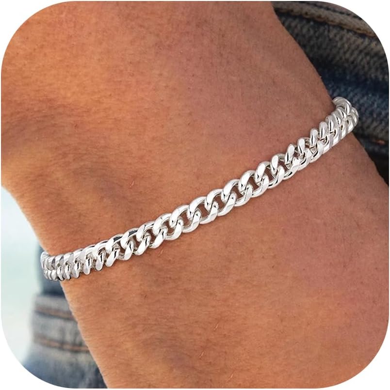 S925 Sterling Silver Bracelet for Men,5.5mm Sterling Silver Link Chain Bracelet for Men Jewelry Gift