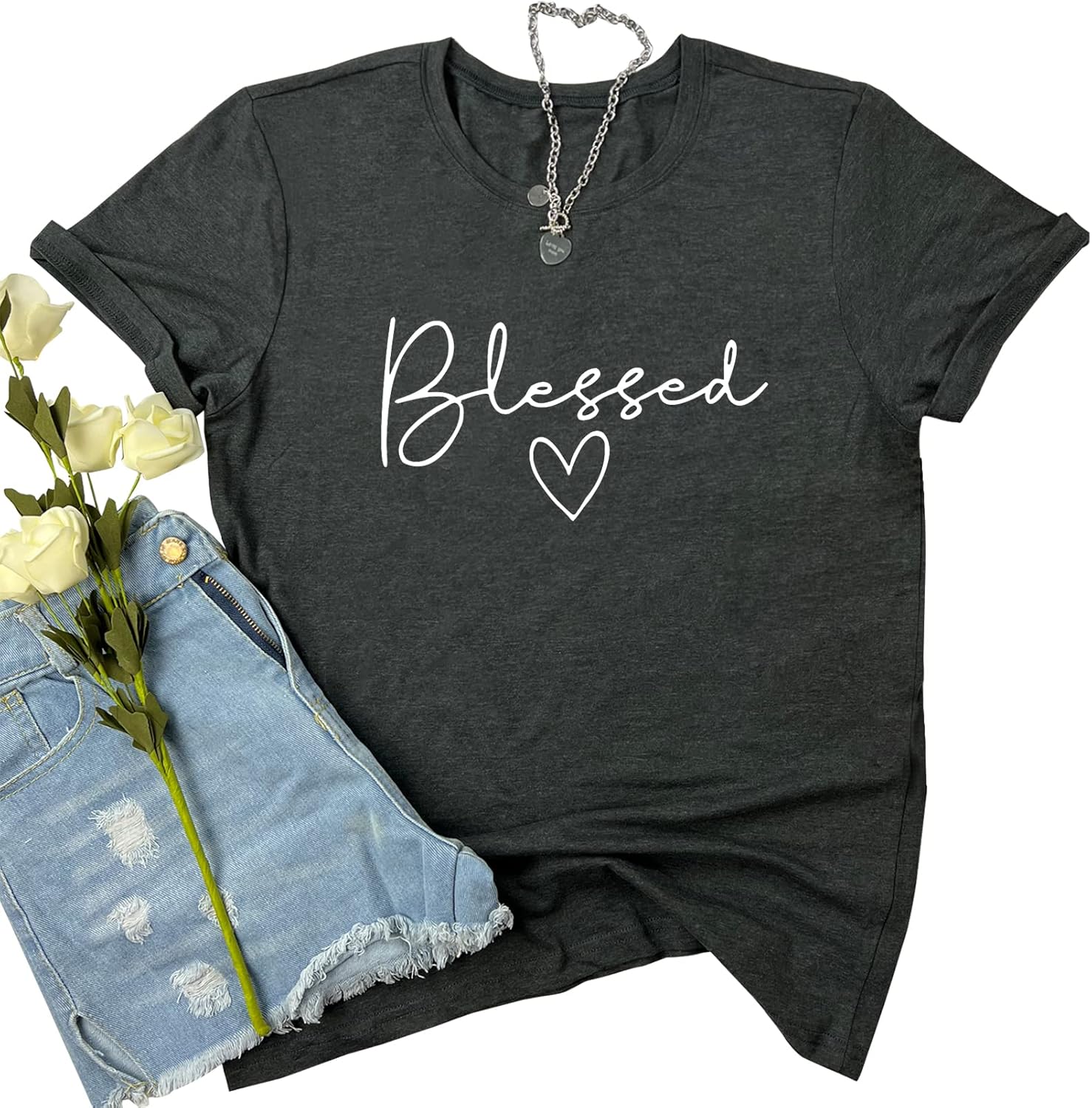 BLACKMYTH Women Cute Graphic Tees Cotton Bleesed Heart T-Shirts