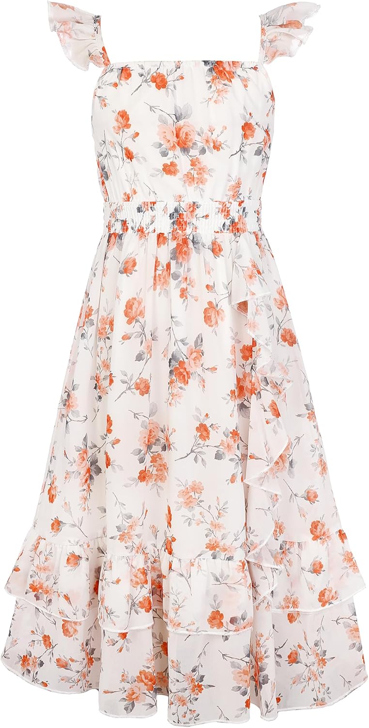 GRACE KARIN Girls Flutter Sleeve Smocked Floral Dresses, Kids Easter Spring Summer Dress, Teen Hawaiian Maxi Long Dresses
