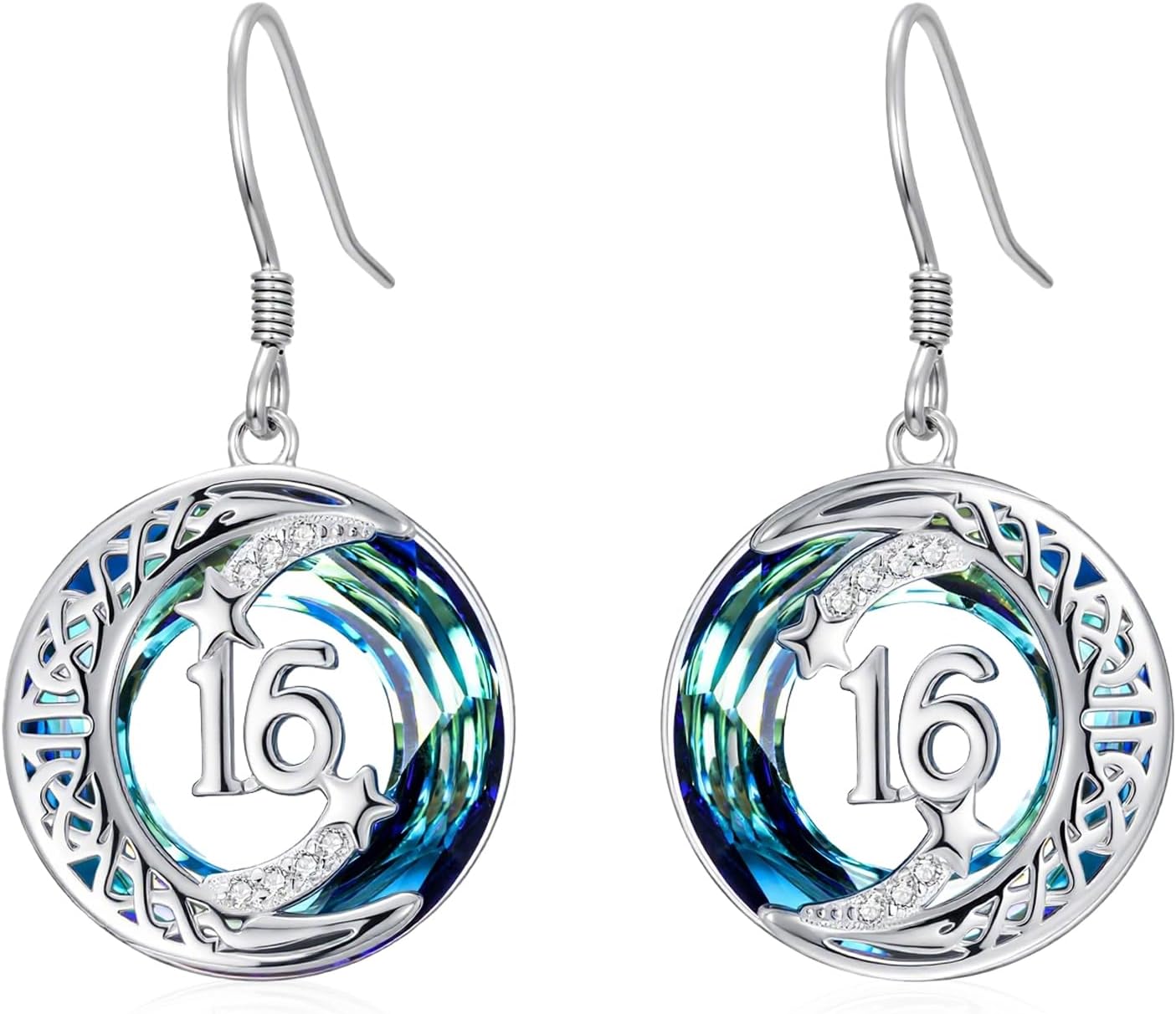 JUSTKIDSTOY Birthday Gifts Earrings for Daughter 925 Sterling Silver Birthday Gift Earrings Celtic Moon Star Leverback Dangle Drop Earrings Blue Crystal Jewelry for Women Sister