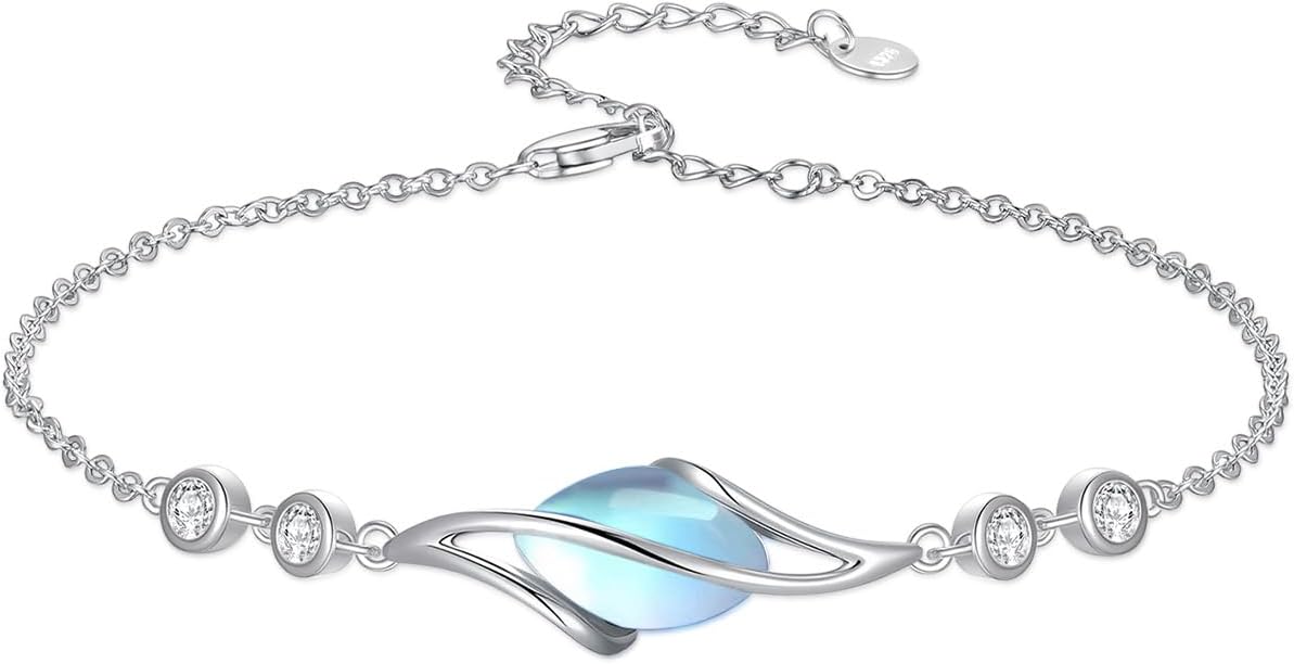 925 Sterling Silver Bracelet for Women Oval Gemstone Link Bracelet Fine Jewelry Gifts for Women Wife Mom