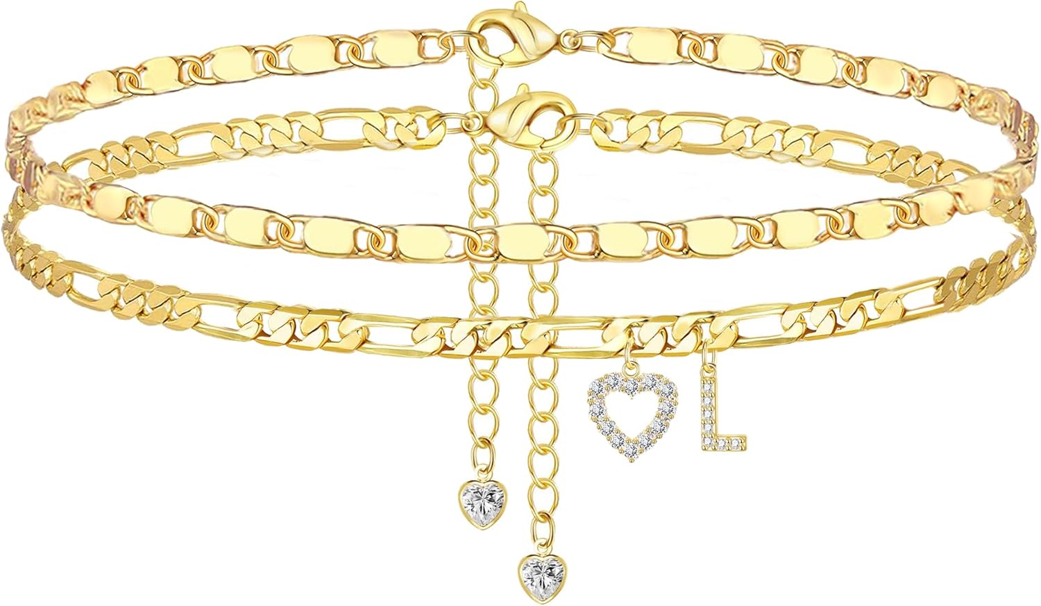 Ankle Bracelets for Women,14K Gold Plated Initial Anklets Dainty Heart Letter Ankle Bracelets Layered Gold Anklets for Women Non Tarnish A to Z Summer Beach Jewelry