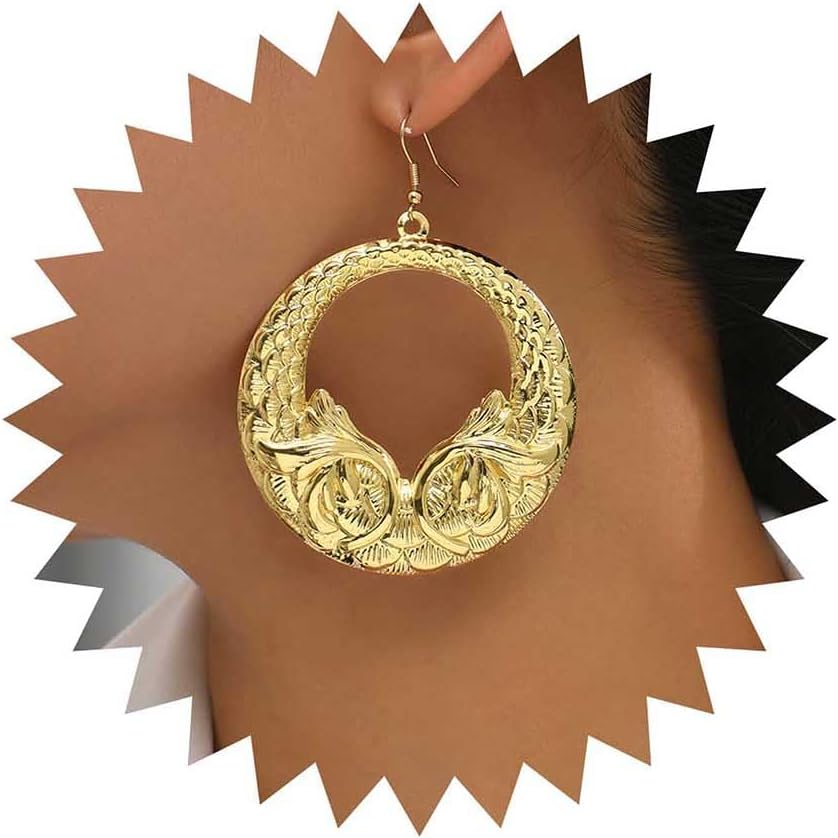 Vintage Hammered Circle Dangle Earrings Gold Circle Hoop Earrings Hollow Circle Drop Earrings Metal Hoop Earrings Exaggerated Circle Earrings Jewelry for Women