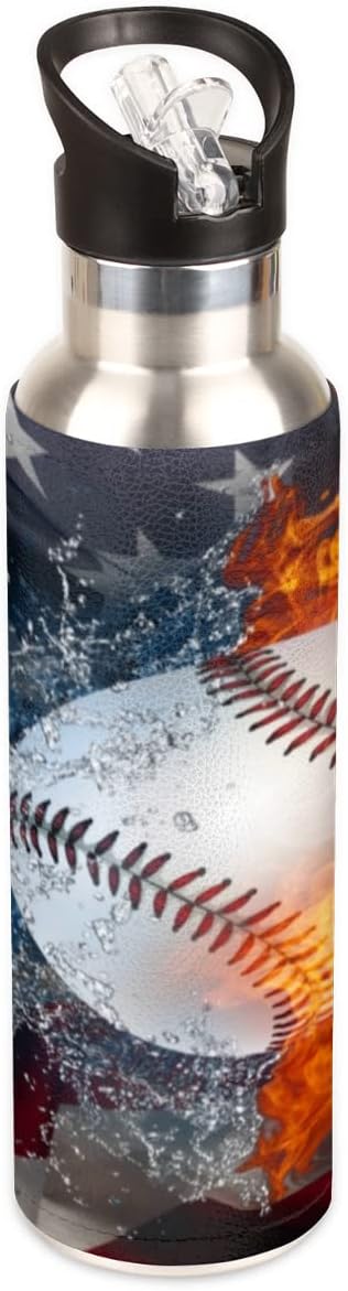 Insulated Stainless Steel Water Bottle with Straw 20oz Red Blue Usa Flag Sport Baseball Sports Water Bottles BPA Free Leakproof Metal Vacuum Flask Jug for Kids Gym Fitness