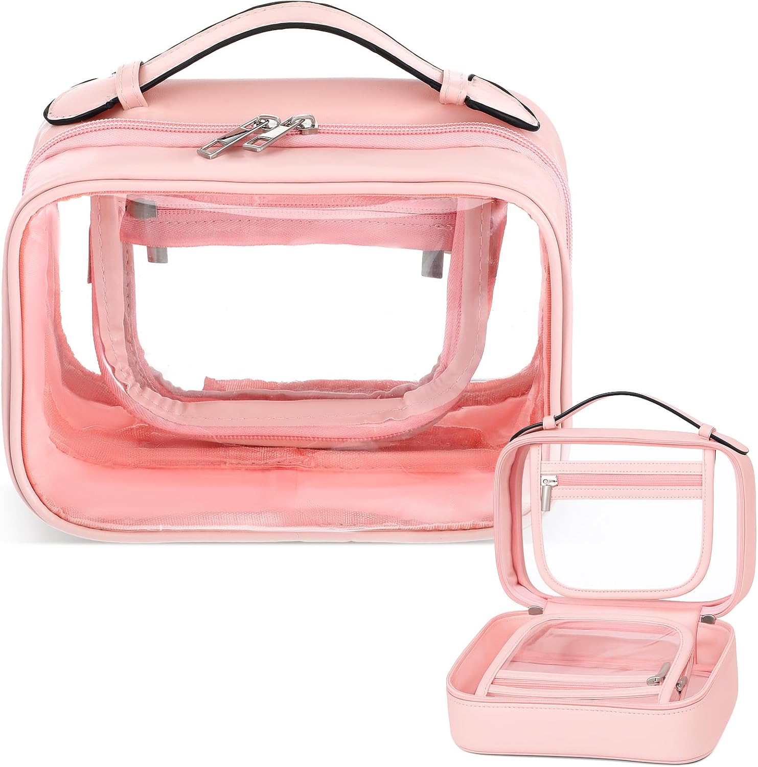 2 PCS traveling toiletry Case large clear cosmetics case makeup bag Dimensions | LxWxH:7.8” x 4.5” x 5.9”(pink, Medium)
