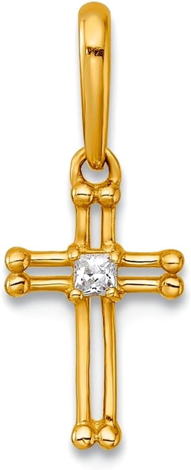 JewelryWeb 6.5mm 14k Solid Yellow Gold Polished and Beaded Cubic Zirconia Open Religious Faith Cross Pendant Necklace Pendant for Women