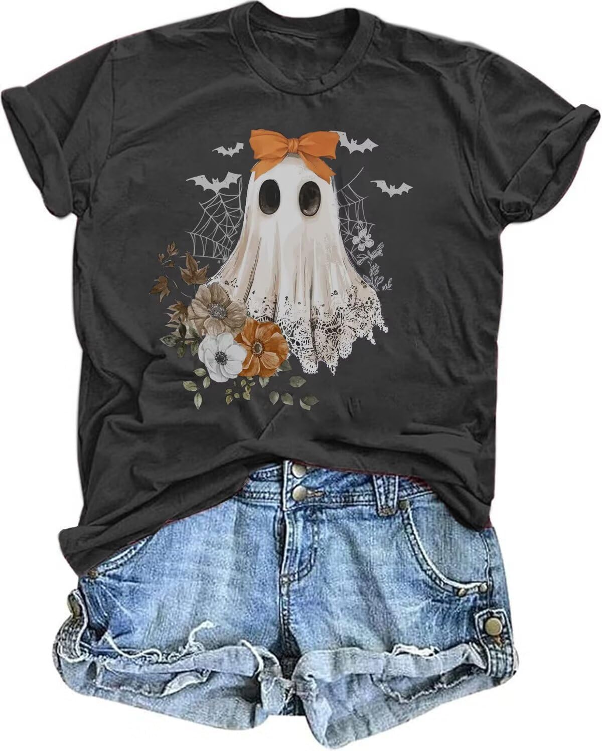 Halloween Shirts for Women Cute Ghost Graphic Tees Fall Crewneck Short Sleeve Costumes Autumn Party Graphic T-Shirt