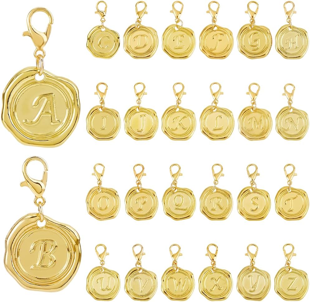 SUPERFINDINGS 52Pcs 26 Styles Letter Charms Clip On Charm Zipper Pulls Charms Alloy A to Z Alphabet Charm with Lobster Clasp Letter Golden Decorations for Keychain Purse Backpack Ornament
