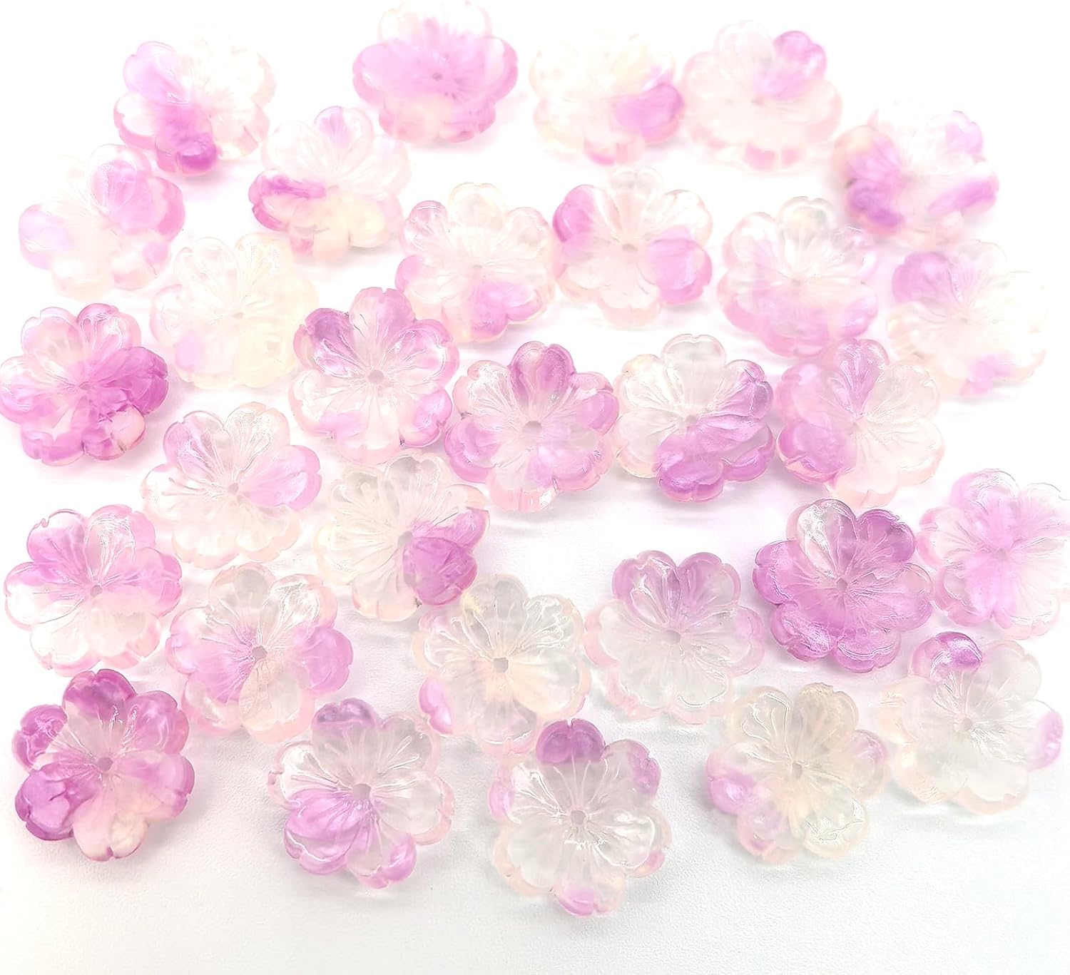- Carving Texture Flower Glass Beads:You will receive 30 Pcs pink gradient transparent 14mm carving texture glass five petal flower beads,exquisite flower shape design can provide you with a variety of choices, you can mix and match randomly according to your preferences.