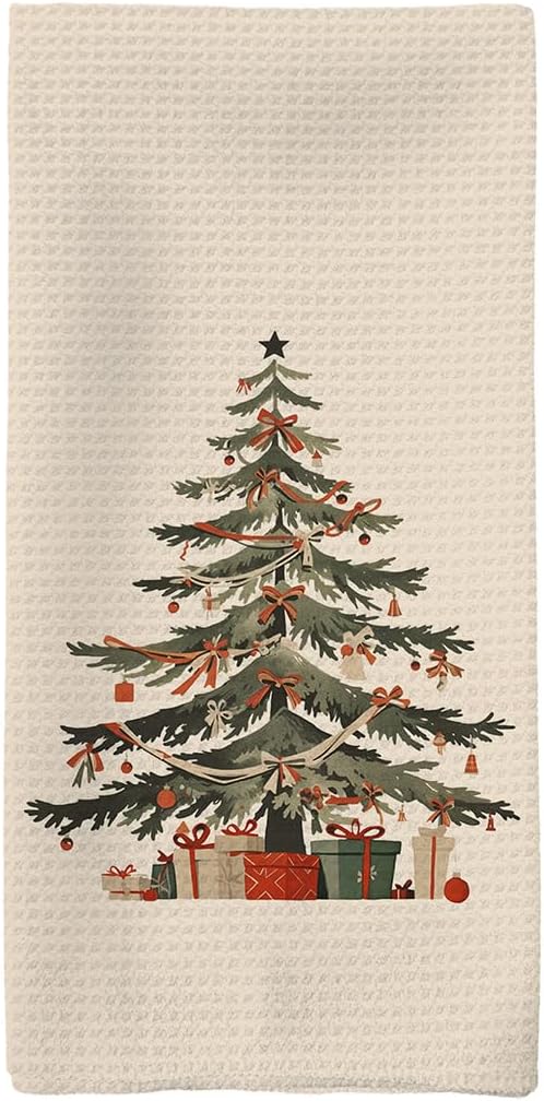 Christmas Kitchen Towels - Red Bow Ribbon Christmas Tree Hand Towels, Dish Towels & Tea Towels for Kitchen & Bathroom Decor - 16x24inch