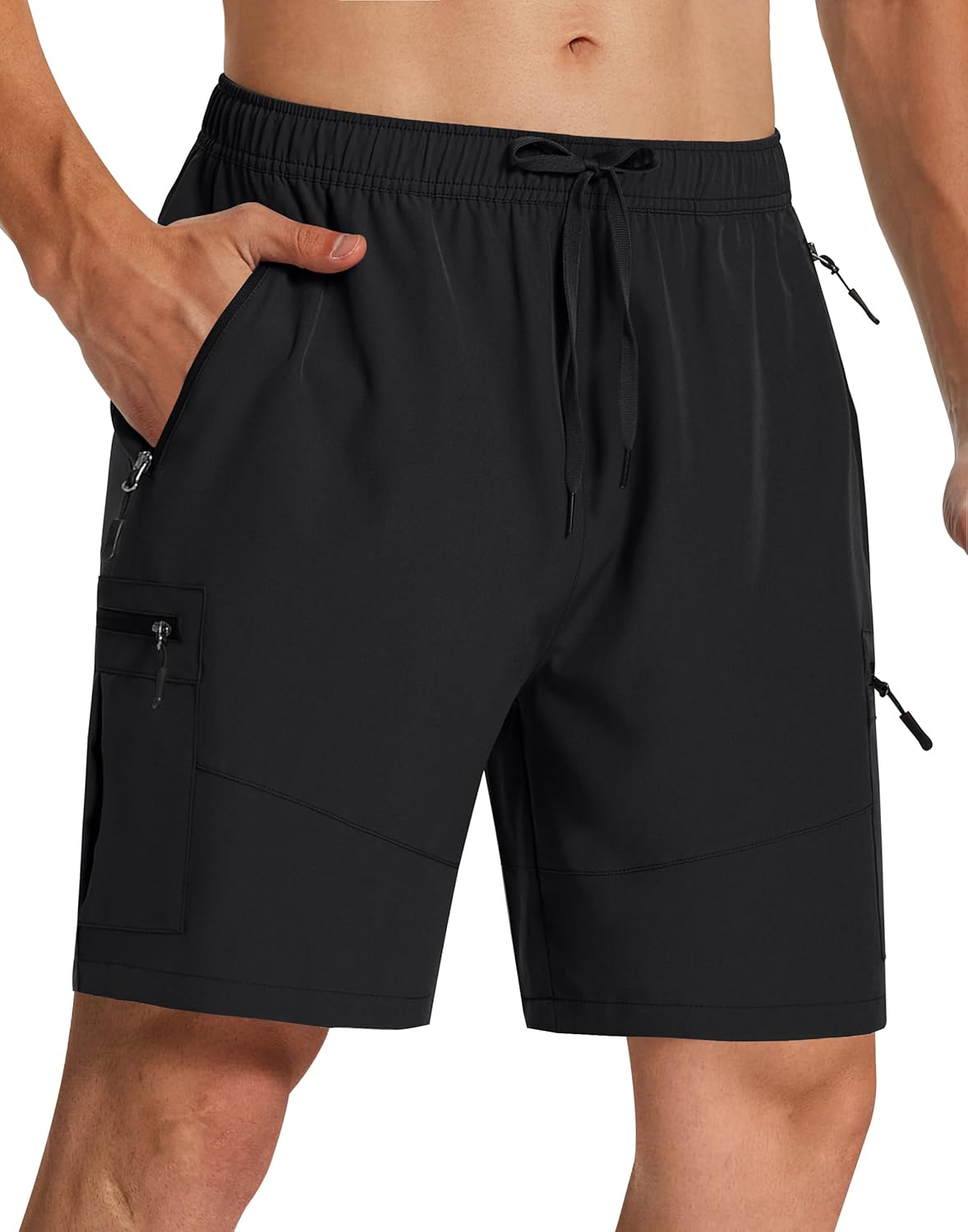 Mens Hiking Cargo Shorts 7" Quick Dry Lightweight Stretch Drawstring Shorts with Zipper Pockets for Hiking Golf Casual