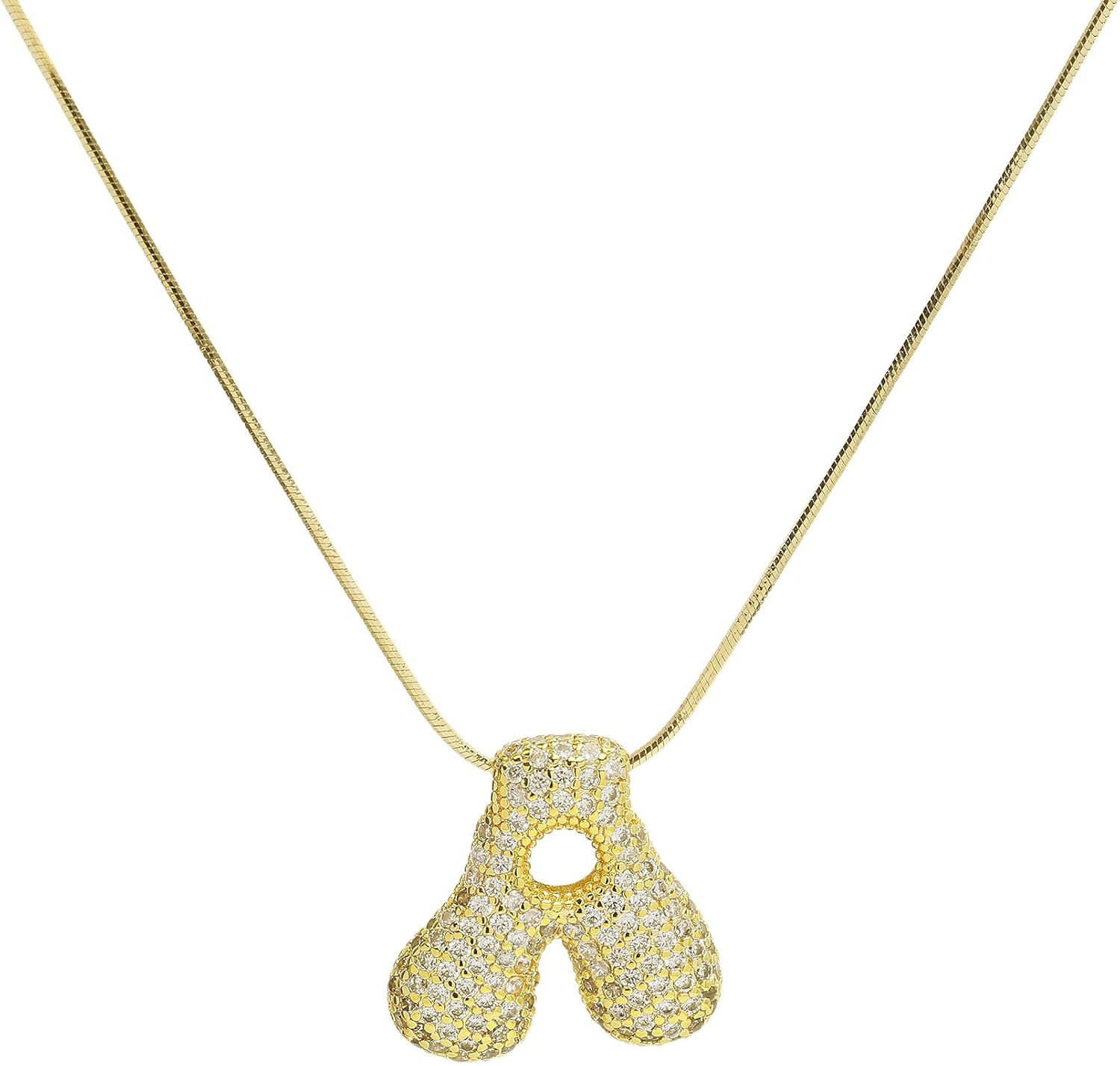 Bubble Letter Necklace, 14K Gold Plated Balloon Initial Pendant Snake Chain Necklace Dainty Iced Out CZ Jewelry Gift for Women
