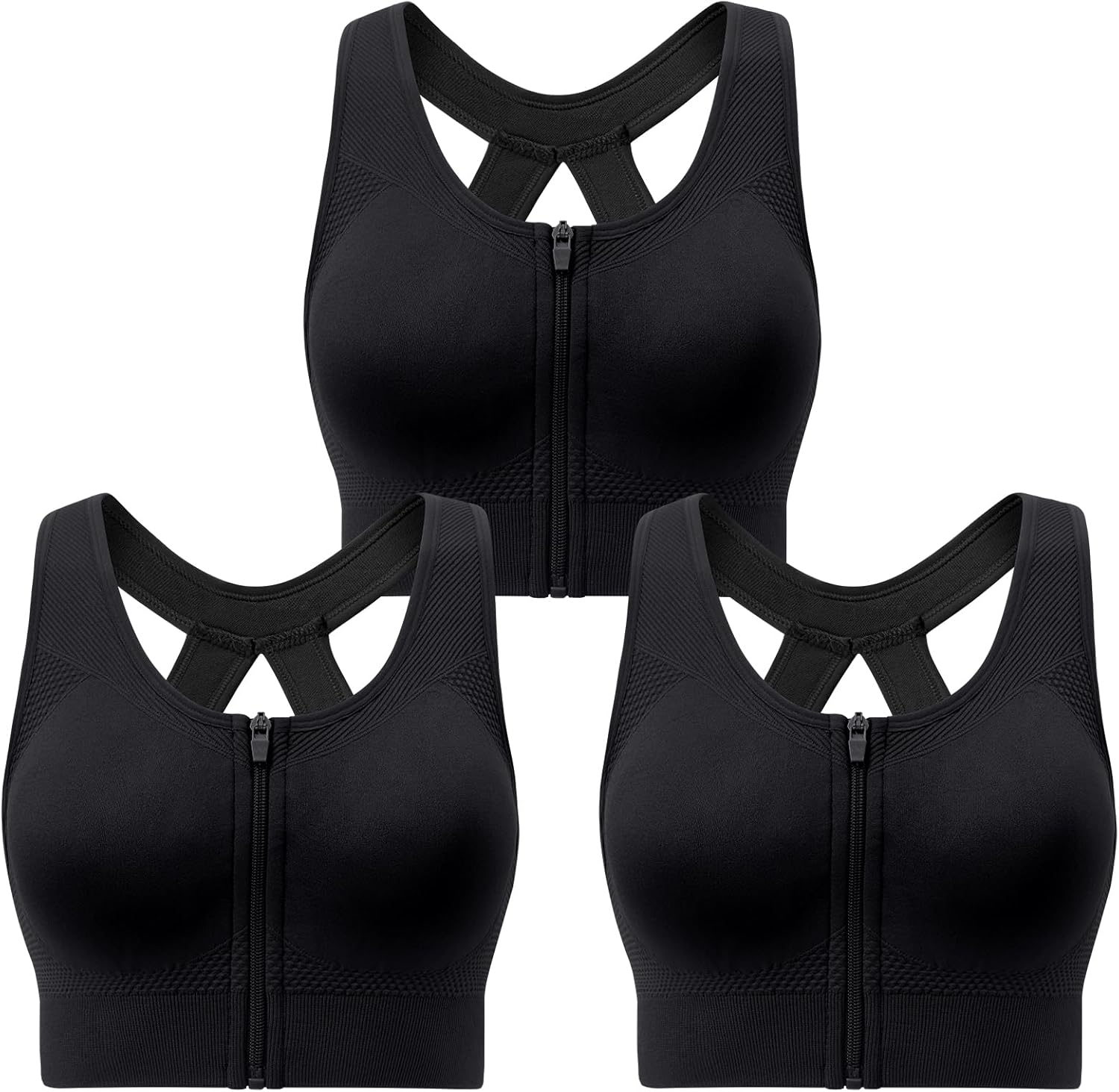 Racerback Padded Sports Bra for Women - Medium Support Zipper Front Workout Bra